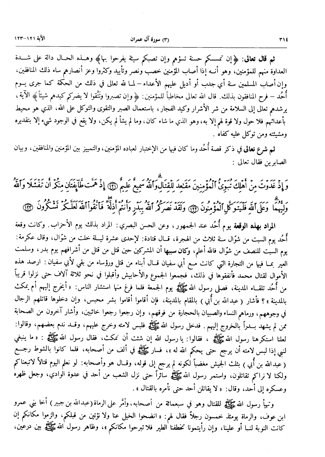 - 121 - وَإِذْ غَدَوْتَ مِنْ أَهْلِكَ تُبَوِّئُ الْمُؤْمِنِينَ مَقَاعِدَ لِلْقِتَالِ وَاللَّهُ سَمِيعٌ عَلِيمٌ