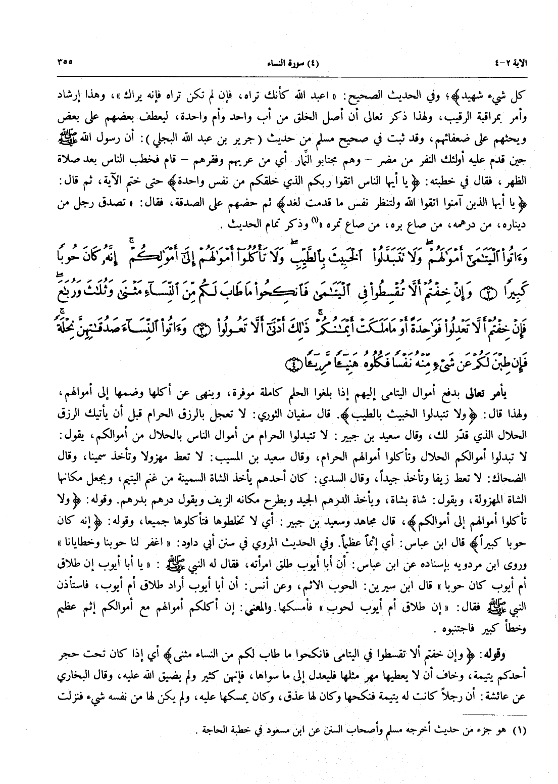 - 2 - وَآتُوا الْيَتَامَى أَمْوَالَهُمْ وَلاَ تَتَبَدَّلُواْ الْخَبِيثَ بِالطَّيِّبِ وَلاَ تَأْكُلُوا أَمْوَالَهُمْ إِلَى أَمْوَالِكُمْ إِنَّهُ كَانَ حُوباً كَبِيراً