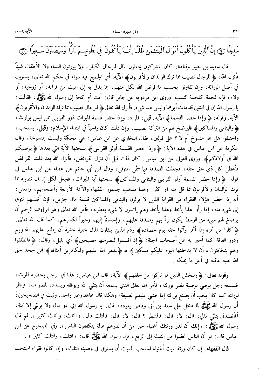- 10 - إِنَّ الَّذِينَ يَأْكُلُونَ أَمْوَالَ الْيَتَامَى ظُلْمًا إِنَّمَا يَأْكُلُونَ فِي بُطُونِهِمْ نَاراً وَسَيَصْلَوْنَ سَعِيرًا