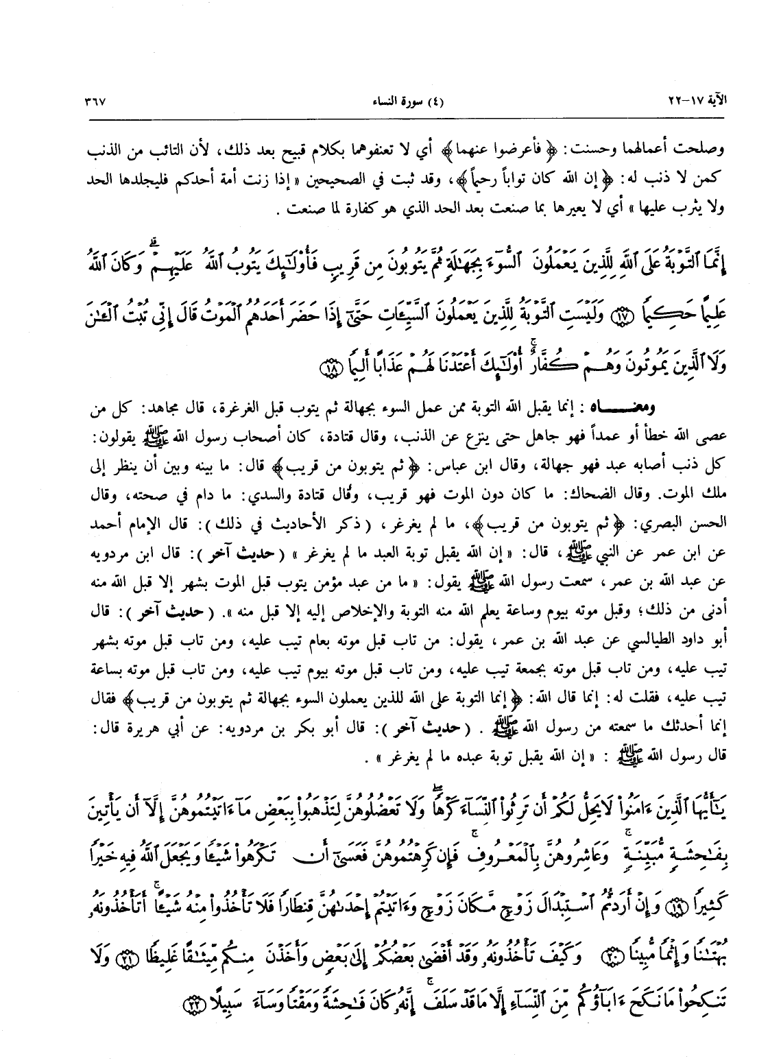 - 17 - إِنَّمَا التَّوْبَةُ عَلَى اللَّهِ لِلَّذِينَ يَعْمَلُونَ السُّوءَ بِجَهَالَةٍ ثُمَّ يَتُوبُونَ مِن قَرِيبٍ فَأُولَئِكَ يَتُوبُ اللَّهُ عَلَيْهِمْ وَكَانَ اللَّهُ عَلِيماً حَكِيمًا