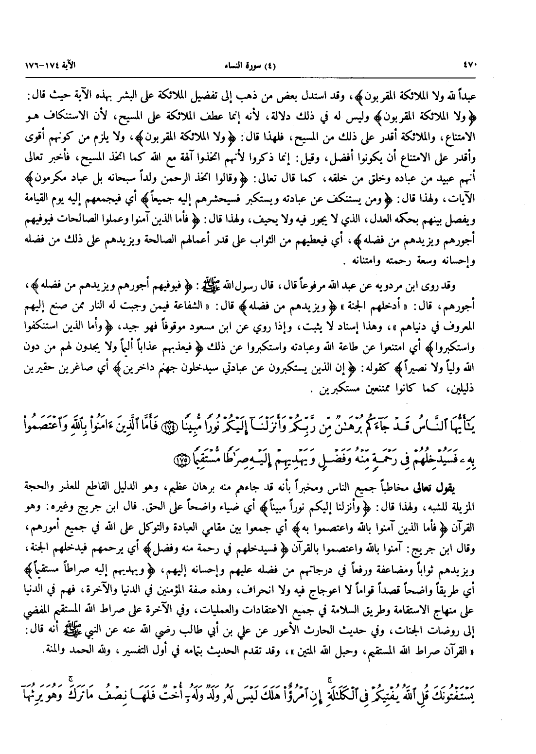 - 174 - يَا أَيُّهَا النَّاسُ قَدْ جَاءَكُمْ بُرْهَانٌ مِنْ رَبِّكُمْ وَأَنْزَلْنَآ إِلَيْكُمْ نُوراً مُبِينًا