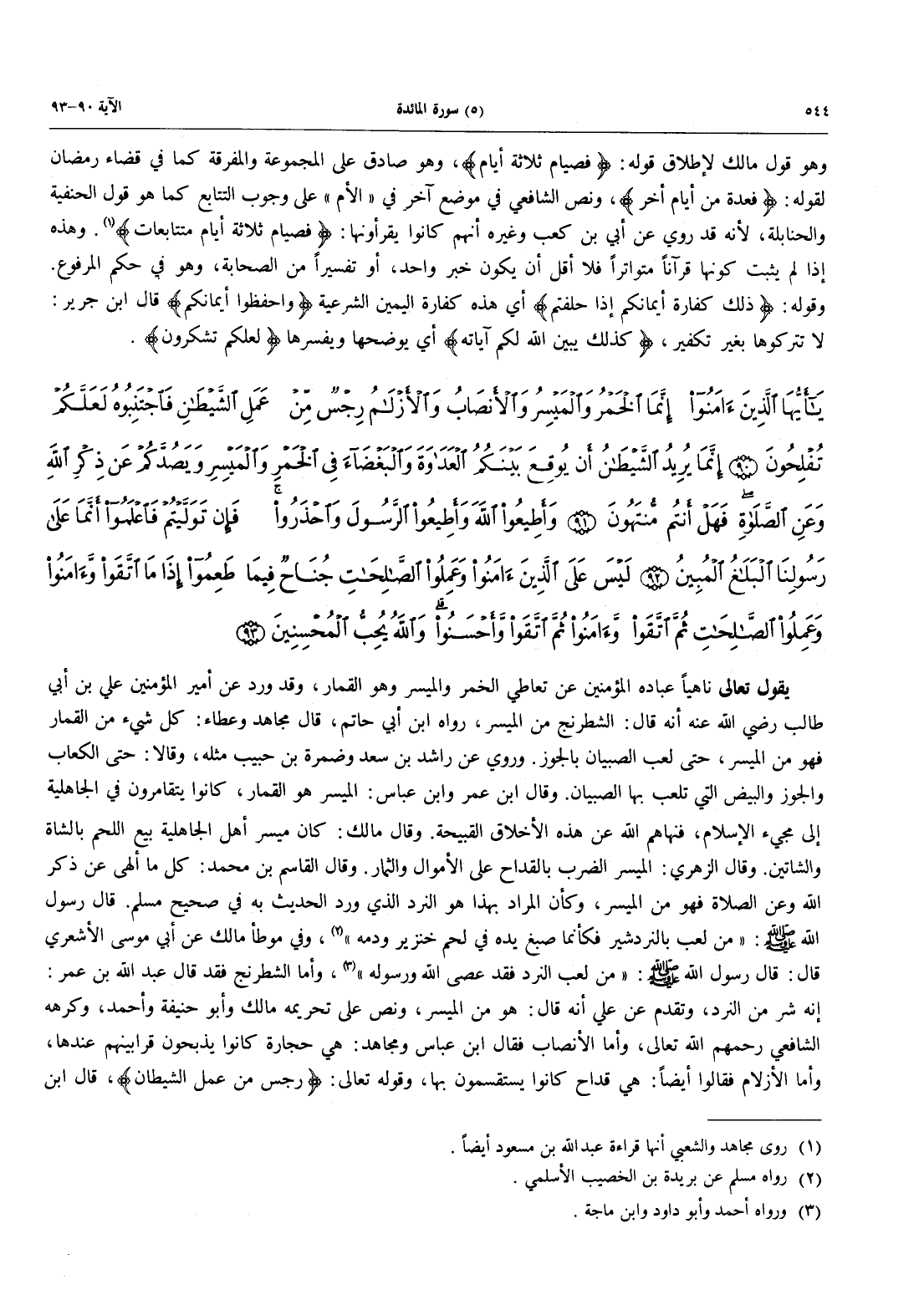 - 90 - يَا أَيُّهَا الَّذِينَ آمَنُواْ إِنَّمَا الْخَمْرُ وَالْمَيْسِرُ وَالْأَنْصَابُ وَالْأَزْلَامُ رِجْسٌ مِّنْ عَمَلِ الشَّيْطَانِ فَاجْتَنِبُوهُ لَعَلَّكُمْ تُفْلِحُونَ