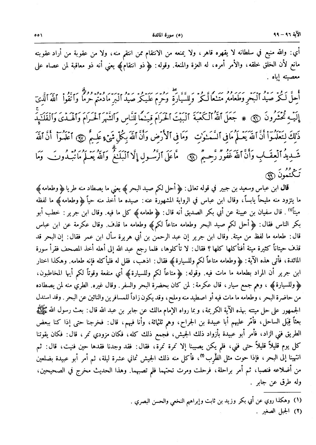 - 96 - أُحِلَّ لَكُمْ صَيْدُ الْبَحْرِ وَطَعَامُهُ مَتَاعاً لَكُمْ وَلِلسَّيَّارَةِ وَحُرِّمَ عَلَيْكُمْ صَيْدُ الْبَرِّ مَا دُمْتُمْ حُرُمًا وَاتَّقُوا اللَّهَ الَّذِي إِلَيْهِ تُحْشَرُونَ