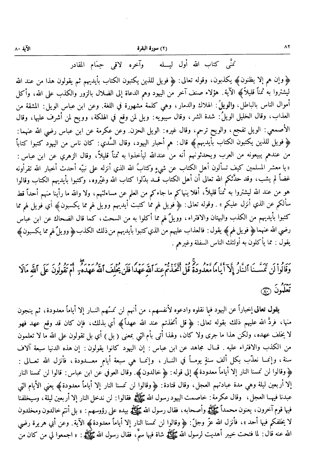 - 80 - وَقَالُوا لَنْ تَمَسَّنَا النَّارُ إِلَّا أَيَّامًا مَعْدُودَةً قُلْ أَتَّخَذْتُمْ عِندَ اللَّهِ عَهْدًا فَلَنْ يُخْلِفَ اللَّهُ عَهْدَهُ أَمْ تَقُولُونَ عَلَى اللَّهِ مَا لاَ تَعْلَمُونَ