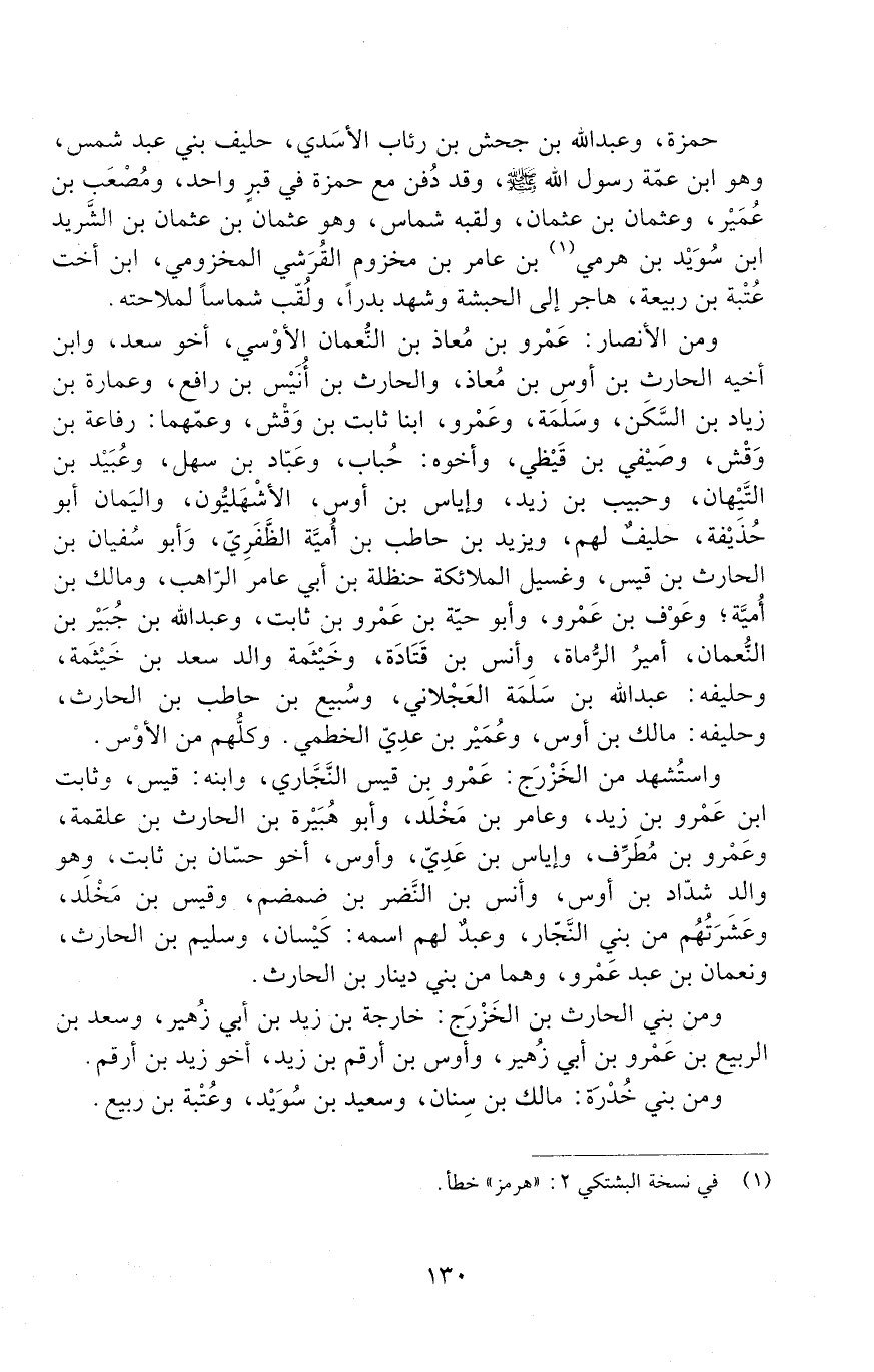 حَمْزَةُ، وَعَبْدُ اللَّهِ بْنُ جَحْشِ بْنِ رِئَابٍ الْأَسَدِيُّ، حَلِيفُ بَنِي عَبْدِ شَمْسٍ، وَهُوَ ابْنُ عَمَّةِ رَسُولِ اللَّهِ - صَلَّى اللَّهُ عَلَيْهِ وَسَلَّمَ -، وَقَدْ دُفِنَ مَعَ حَمْزَةَ فِي قَبْرٍ وَاحِدٍ. وَمُصْعَبُ بْنُ عُمَيْرٍ، وَعُثْمَانُ بْنُ عُثْمَانَ، وَلَقَبُهُ شَمَّاسٌ، وَهُوَ عُثْمَانُ بْنُ عُثْمَانَ بْنِ الشَّرِيدِ بْنِ سُوَيْدِ بْنِ هَرَمِيِّ بْنِ عَامِرِ بْنِ مَخْزُومٍ الْقُرَشِيُّ الْمَخْزُومِيُّ، ابْنُ أُخْتِ عُتْبَةَ بْنِ رَبِيعَةَ، هَاجَرَ إِلَى الْحَبَشَةِ وَشَهِدَ بَدْرًا. وَلُقِّبَ شَمَّاسًا لِمِلَاحَتِهِ.