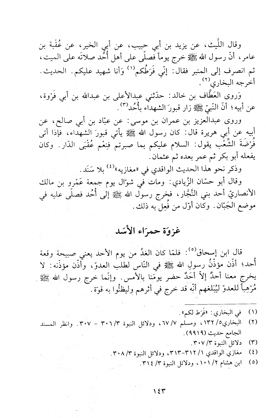 وَقَالَ اللَّيْثُ، عَنْ يَزِيدَ بْنِ أَبِي حَبِيبٍ، عَنْ أَبِي الْخَيْرِ، عَنْ عُقْبَةَ بْنِ عَامِرٍ، أَنَّ رَسُولَ اللَّهِ صَلَّى اللَّهُ عَلَيْهِ وَسَلَّمَ خَرَجَ يَوْمًا فَصَلَّى عَلَى أَهْلِ أُحُدٍ صَلَاتَهُ عَلَى الْمَيِّتِ، ثُمَّ انْصَرَفَ إِلَى الْمِنْبَرِ فَقَالَ: إني فرطكم وَأَنَا شَهِيدٌ عَلَيْكُمْ. الْحَدِيثُ أَخْرَجَهُ الْبُخَارِيُّ.