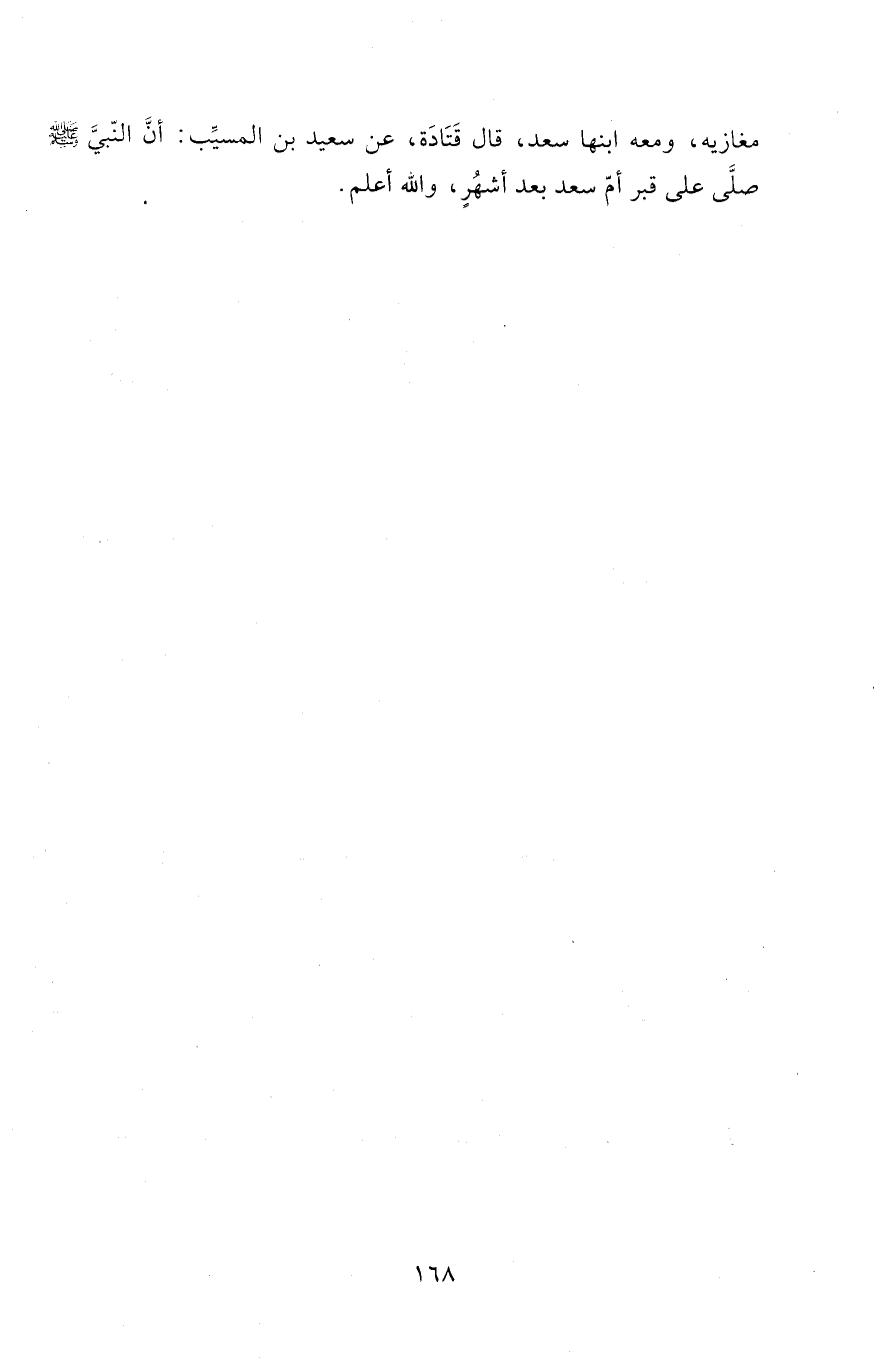 مغازية، ومعه ابنها سعد، قَالَ قَتَادة، عَنْ سعيد بن المسيّب، أَنَّ النَّبِيَّ صَلَّى اللَّهُ عَلَيْهِ وَسَلَّمَ صلَّى على قبر أم سعد بعد أشهُر، والله أعلم.