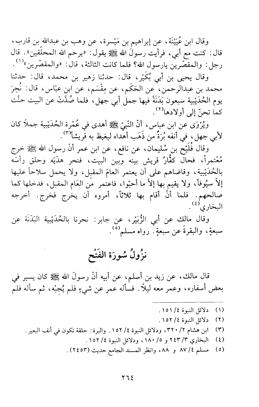 وَقَالَ فُلَيْحُ بْنُ سُلَيْمَانَ، عَنْ نَافِعٍ، عَنِ ابْنِ عُمَرَ أَنّ رَسُولَ اللَّهِ - صَلَّى اللَّهُ عَلَيْهِ وَسَلَّمَ - خَرَجَ مُعْتَمِرًا، فَحَالَ كُفَّارُ قُرَيْشٍ بَيْنَهُ وَبَيْنَ الْبَيْتِ. فَنَحَرَ هَدْيَهُ وَحَلَقَ رَأْسَهُ بِالْحُدَيْبِيَةِ، وَقَاضَاهُمْ عَلَى أَنْ يَعْتَمِرَ الْعَامَ الْمُقْبِلَ، وَلا يَحْمِلَ سِلاحًا عَلَيْهَا إِلا سُيُوفًا، وَلا يُقِيمَ بِهَا إِلا مَا أَحَبُّوا، فَاعْتَمَرَ مِنَ الْعَامِ الْمُقْبِلِ، فَدَخَلَهَا كَمَا صَالَحَهُمْ. فَلَمَّا أَنْ أَقَامَ بِهَا ثَلاثًا، أَمَرُوهُ أَنْ يَخْرُجَ فَخَرَجَ. أَخْرَجَهُ الْبُخَارِيُّ.