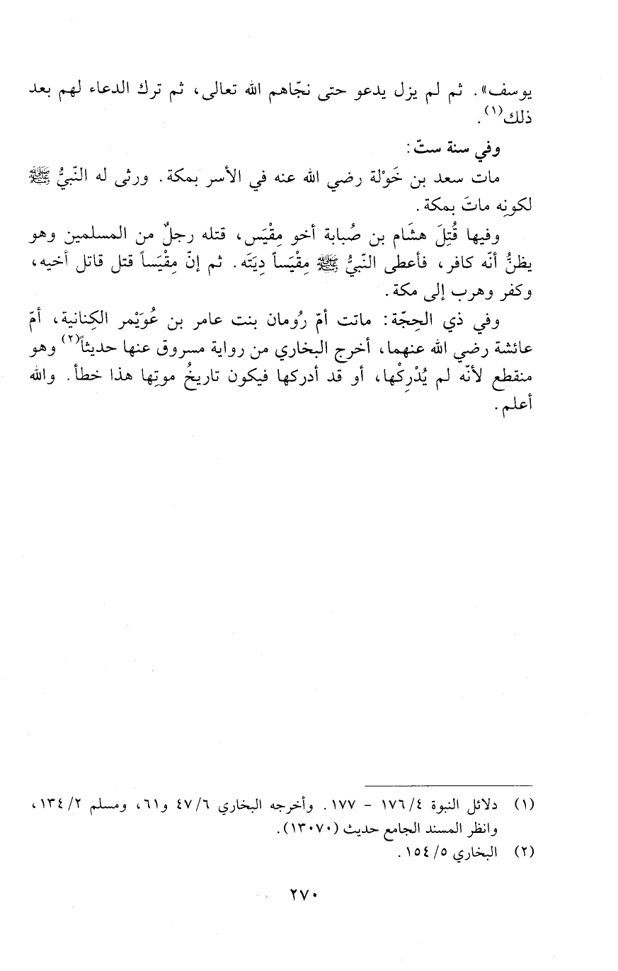 وفي ذي الحجة: ماتت أمّ رُومان بِنْت عامر بْن عُوَيْمر الكِنانية، أمّ عَائِشَةَ رَضِيَ اللَّهُ عَنْهُمَا، أخرج الْبُخَارِيّ من رواية مسروق عَنْهَا حديثًا وهو منقطع لأنّه لم يدركها، أو قد أدركها فيكون تاريخُ موتها هذا خطأ. والله أعلم.