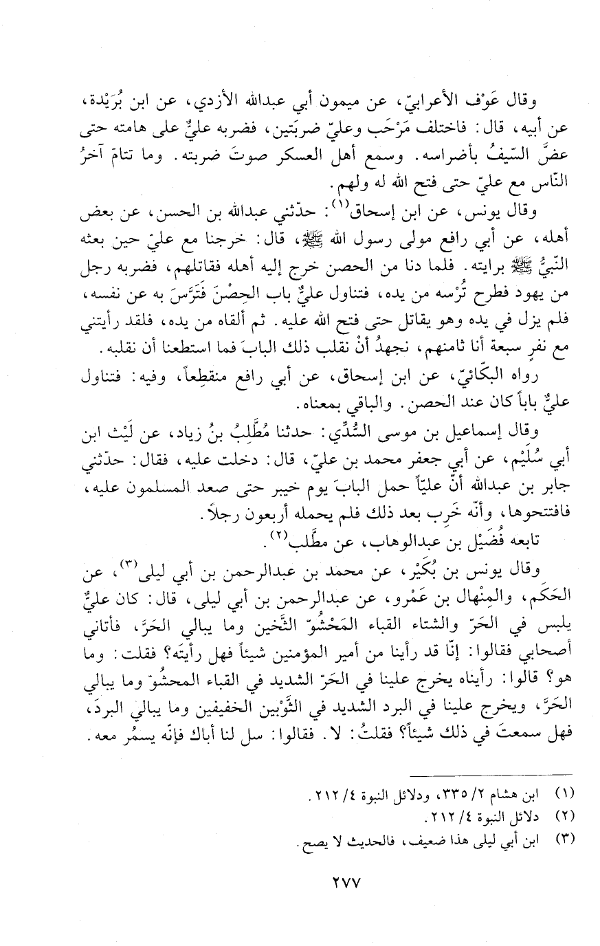 رَوَاهُ الْبَكَّائِيُّ، عَنِ ابْنِ إِسْحَاقَ، عَنْ أَبِي رَافِعٍ مُنْقَطِعًا، وَفِيهِ: فَتَنَاوَلَ عَلِيٌّ بَابًا كَانَ عِنْدَ الْحِصْنِ. وَالْبَاقِي بمعناه.
