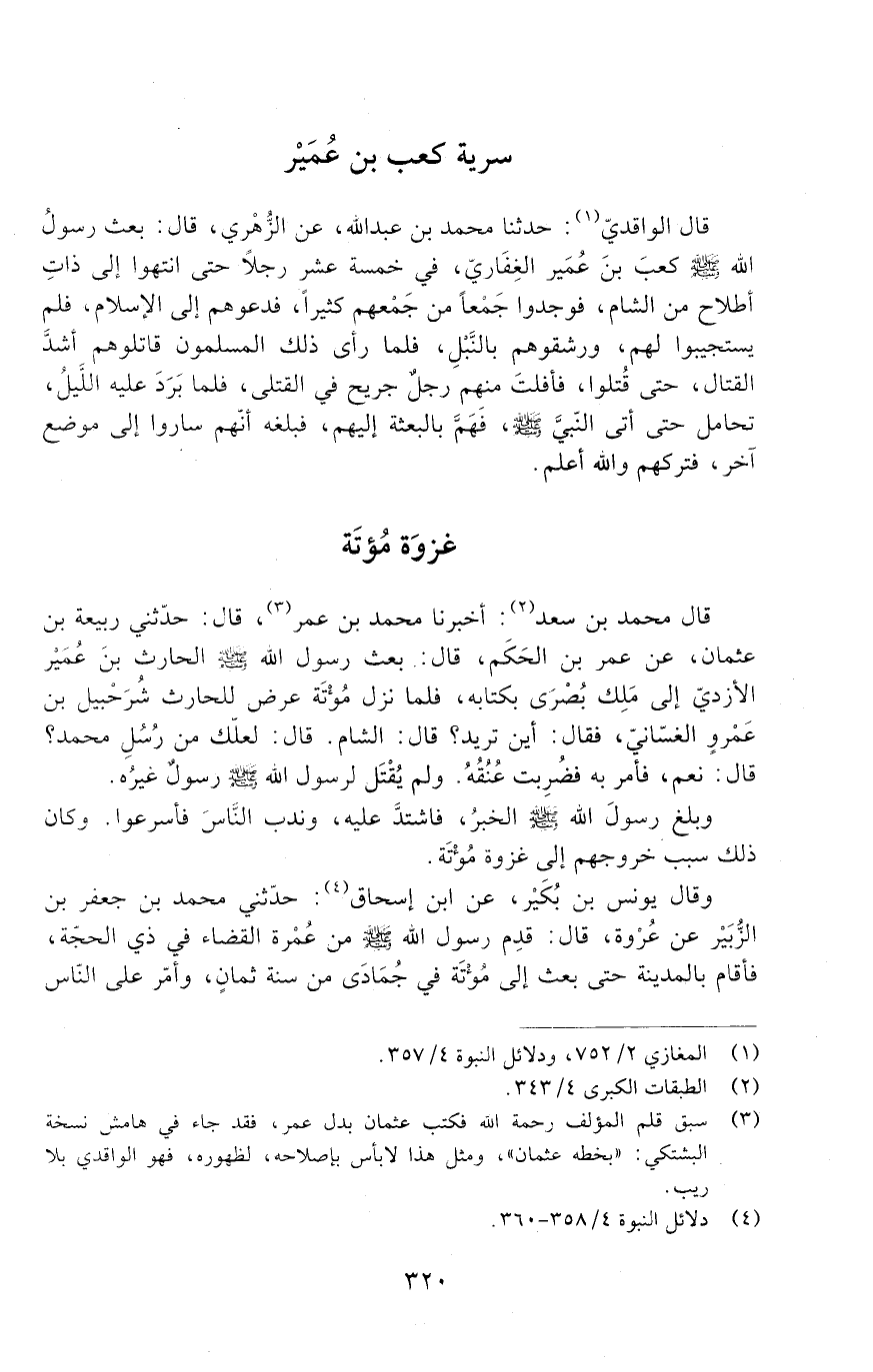 قَالَ محمد بن سعد: أخبرنا محمد بن عمر، قال: حَدَّثَنِي رَبِيعَةُ بْنُ عُثْمَانَ، عَنْ عُمَرَ بْنِ الْحَكَمِ قَالَ: بَعَثَ رَسُولُ اللَّهِ صَلَّى اللَّهُ عَلَيْهِ وَسَلَّمَ الْحَارِثَ بْنَ عُمَيْرٍ الأَزْدِيَّ إِلَى مَلِكِ بُصْرَى بِكِتَابِهِ. فَلَمَّا نَزَلَ مُؤْتَةَ عَرَضَ لِلْحَارِثِ شُرَحْبِيلُ بْنُ عَمْرٍو الْغَسَّانِيُّ، فَقَالَ: أَيْنَ تُرِيدُ؟ قَالَ: الشَّامَ. قَالَ: لَعَلَّكَ مِنْ رُسُلِ مُحَمَّدٍ؟ قَالَ: نَعَمْ، فَأَمَرَ بِهِ فَضُرِبَتْ عُنُقُهُ. وَلَمْ يُقْتَلْ لِرَسُولِ اللَّهِ صَلَّى اللَّهُ عَلَيْهِ وَسَلَّمَ رَسُولٌ غَيْرُهُ.