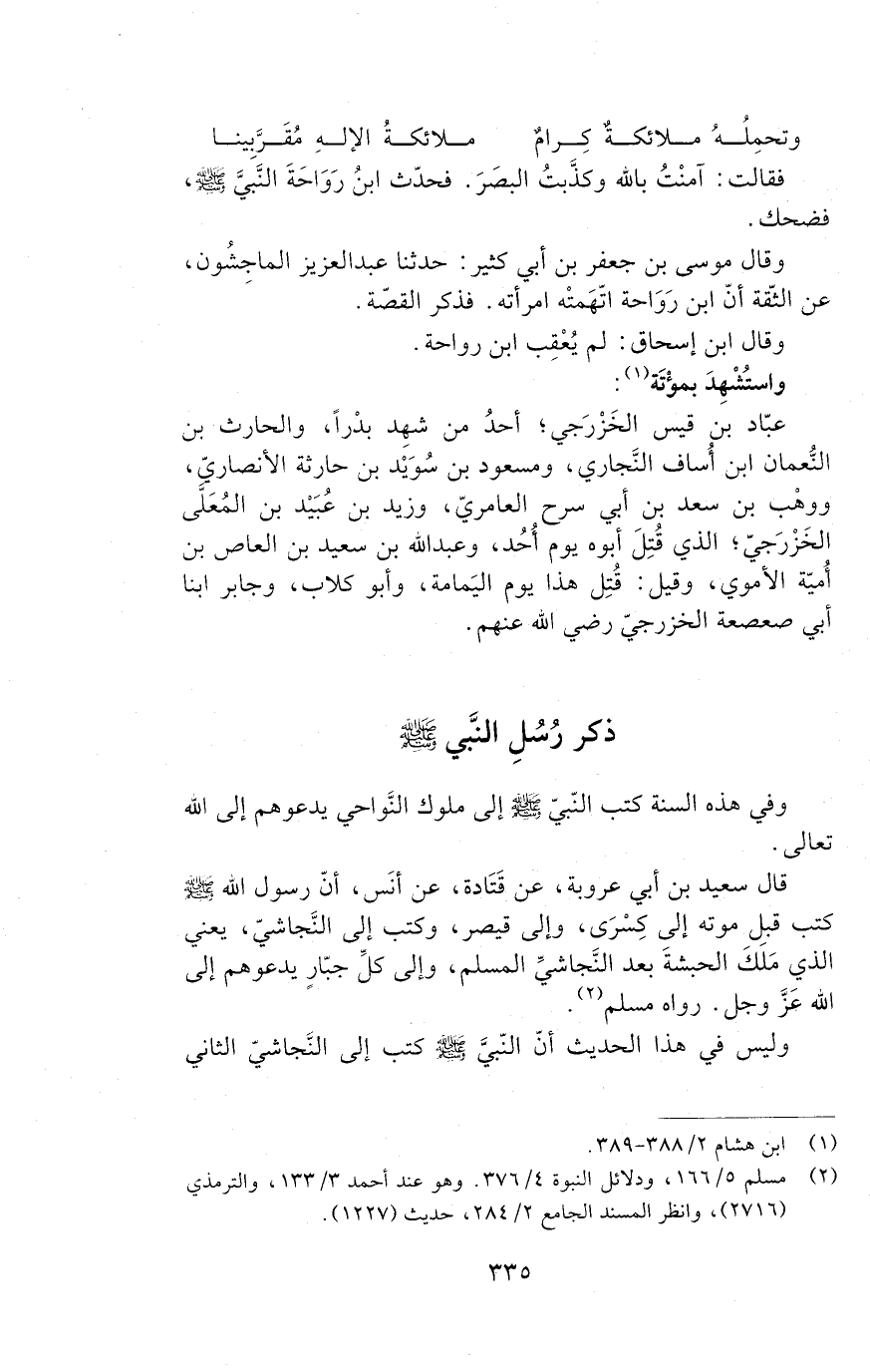 قَالَ سَعِيدُ بْنُ أَبِي عَرُوبَةَ عَنْ قَتَادَةَ، عَنْ أَنَسٍ - أَنّ رَسُولَ اللَّهِ صَلَّى اللَّهُ عَلَيْهِ وَسَلَّمَ كَتَبَ قَبْلَ مَوْتِهِ إِلَى كِسْرَى وَإِلَى قَيْصَرَ، وَكَتَبَ إِلَى النَّجَاشِيِّ يَعْنِي الَّذِي مَلَكَ الْحَبَشَةِ بَعْدَ النَّجَاشِيِّ الْمُسْلِمِ، وإلى كل جبار - يدعوهم إلى الله عز وجل. رَوَاهُ مُسْلِمٌ.