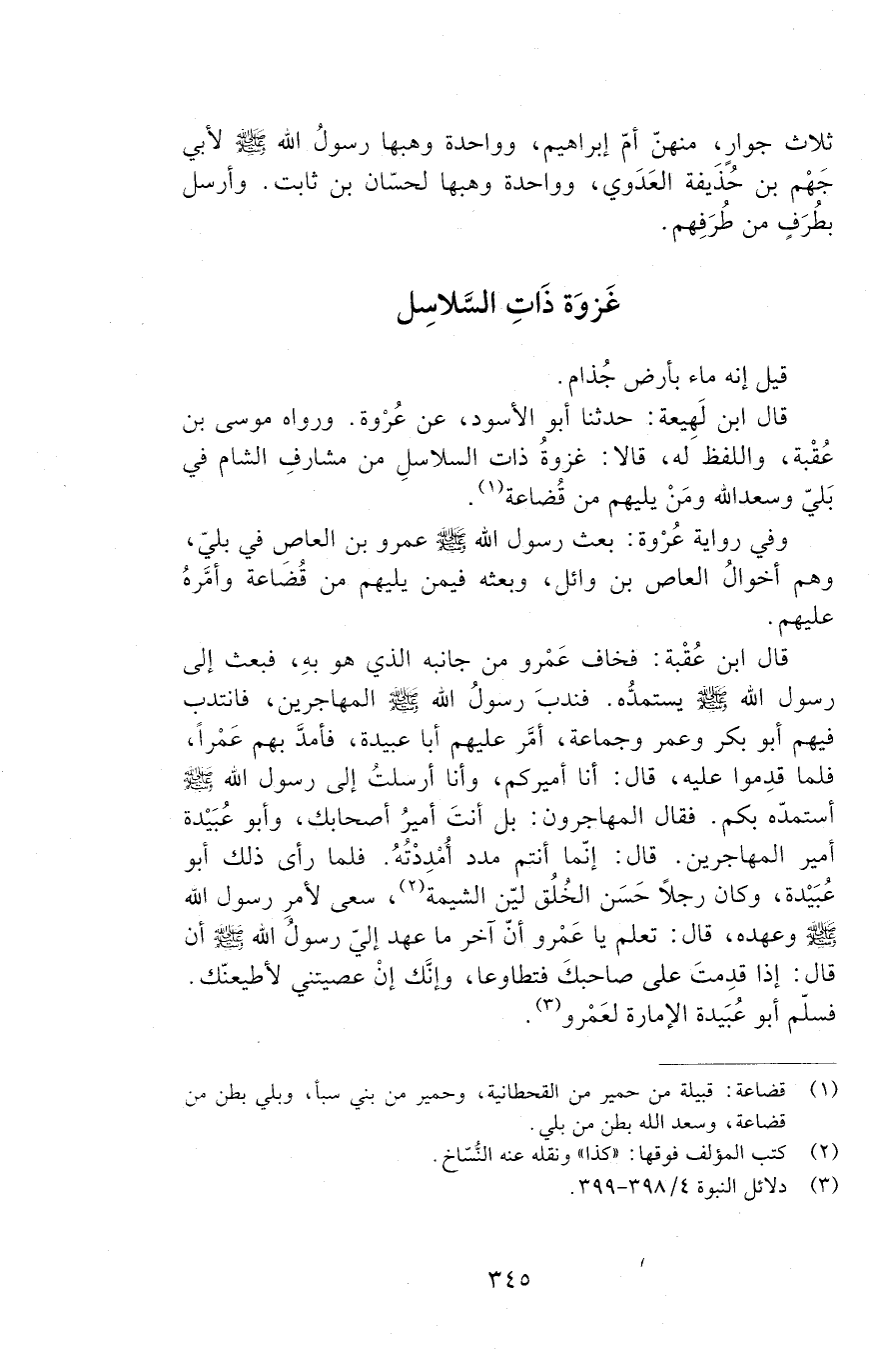 قال ابن لهيعة: حدثنا أَبُو الأسود عَنْ عُرْوة. ورواه مُوسَى بْن عُقْبة، واللفظ لَهُ - قالا: غزوة ذات السلاسل من مشارف الشام فِي بَليّ وسعد اللَّه ومن يليهم من قُضاعة.