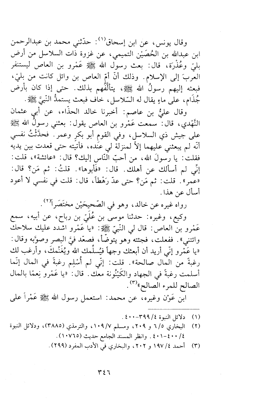 ابْنُ عَوْن وَغَيْرُهُ عَنْ مُحَمَّدٍ: اسْتَعْمَلَ رَسُولُ اللَّهِ صَلَّى اللَّهُ عَلَيْهِ وَسَلَّمَ عَمْرًا عَلَى
