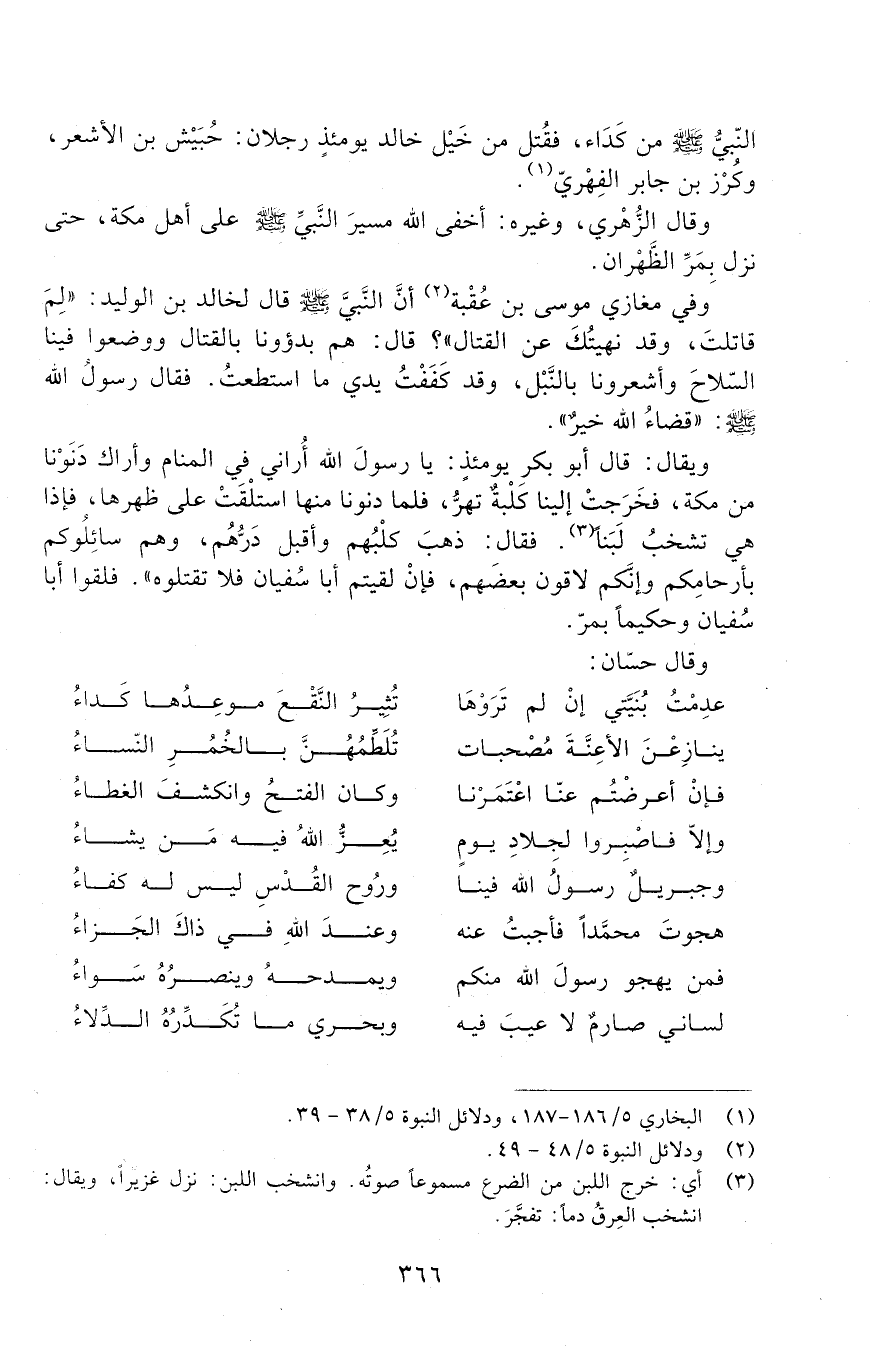 النبي صلى الله عليه وسلم من كداء، فَقُتِلَ مِنْ خَيْلِ خَالِدٍ يَوْمَئِذٍ رَجُلانِ: حُبَيْشُ بْنُ الْأَشْعَرِ، وَكُرْزُ بْنُ جَابِرٍ الْفِهْرِيُّ.
