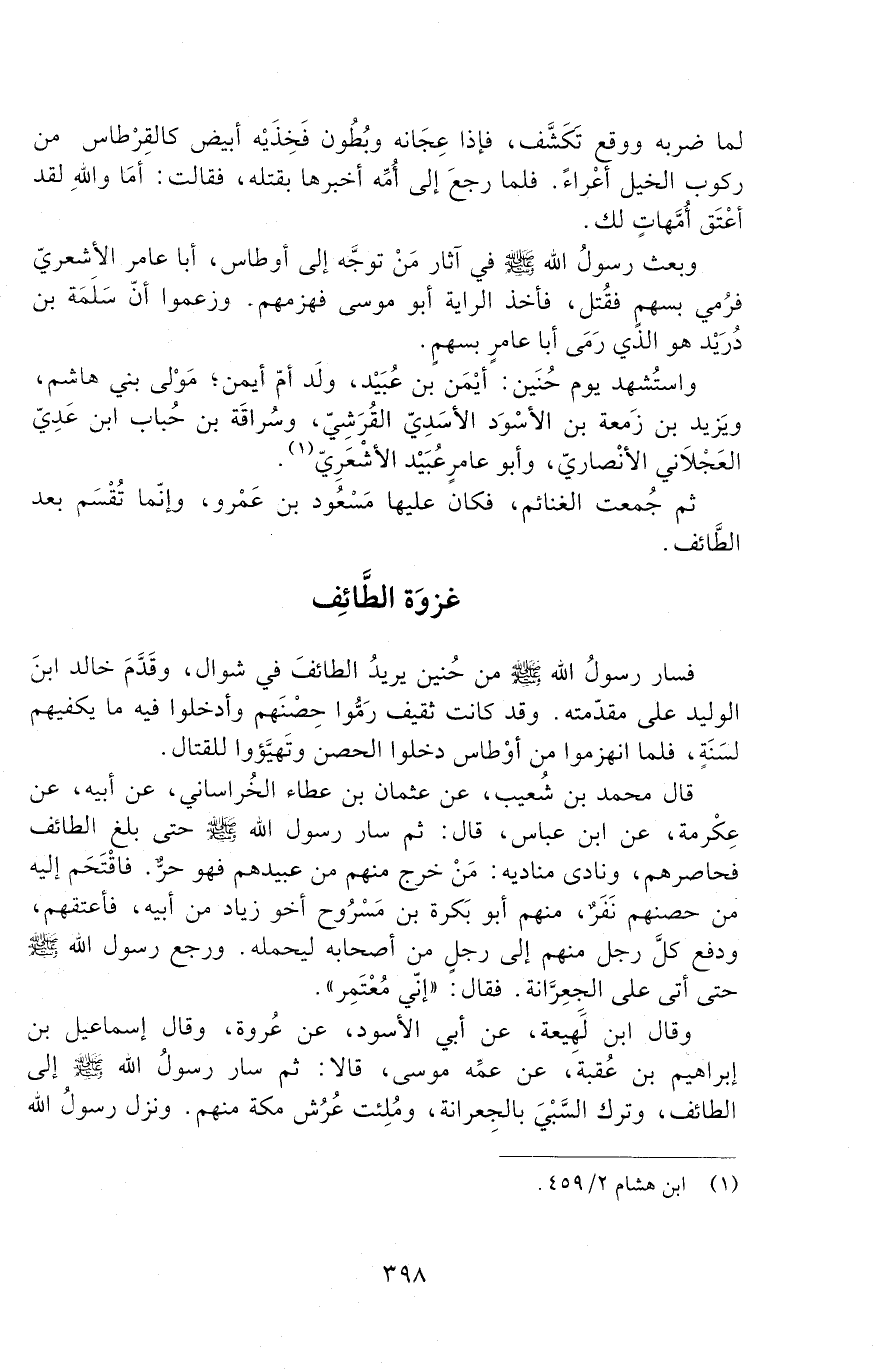 قَالَ مُحَمَّدُ بْنُ شُعَيْبٍ، عَنْ عُثْمَانَ بْنِ عَطَاءٍ الْخُرَاسَانِيِّ، عَنْ أَبِيهِ، عَنْ عِكْرِمَةَ، عَنِ ابْنِ عَبَّاسٍ، قَالَ: ثُمَّ سَارَ رَسُولُ اللَّهِ صَلَّى اللَّهُ عَلَيْهِ وَسَلَّمَ حَتَّى بَلَغَ الطَّائِفَ فَحَاصَرَهُمْ، وَنَادَى مُنَادِيهِ: مَنْ خَرَجَ مِنْهُمْ مِنْ عَبِيدِهِمْ فَهُوَ حُرٌّ. فَاقْتَحَمَ إِلَيْهِ مِنْ حِصْنِهِمْ نَفَرٌ، مِنْهُمْ أَبُو بَكَرَةَ بْنُ مَسْرُوحٍ أَخُو زِيَادٍ مِنْ أَبِيهِ، فَأَعْتَقَهُمْ. وَدَفَعَ كُلَّ رَجُلٍ مِنْهُمْ إِلَى رَجُلٍ مِنْ أَصْحَابِهِ لِيَحْمِلَهُ. ورجع رَسُول اللَّهِ صَلَّى اللَّهُ عَلَيْهِ وَسَلَّمَ حَتَّى أَتَى عَلَى الْجِعْرَانَةِ. فَقَالَ: " إِنِّي مُعْتَمِرٌ ".