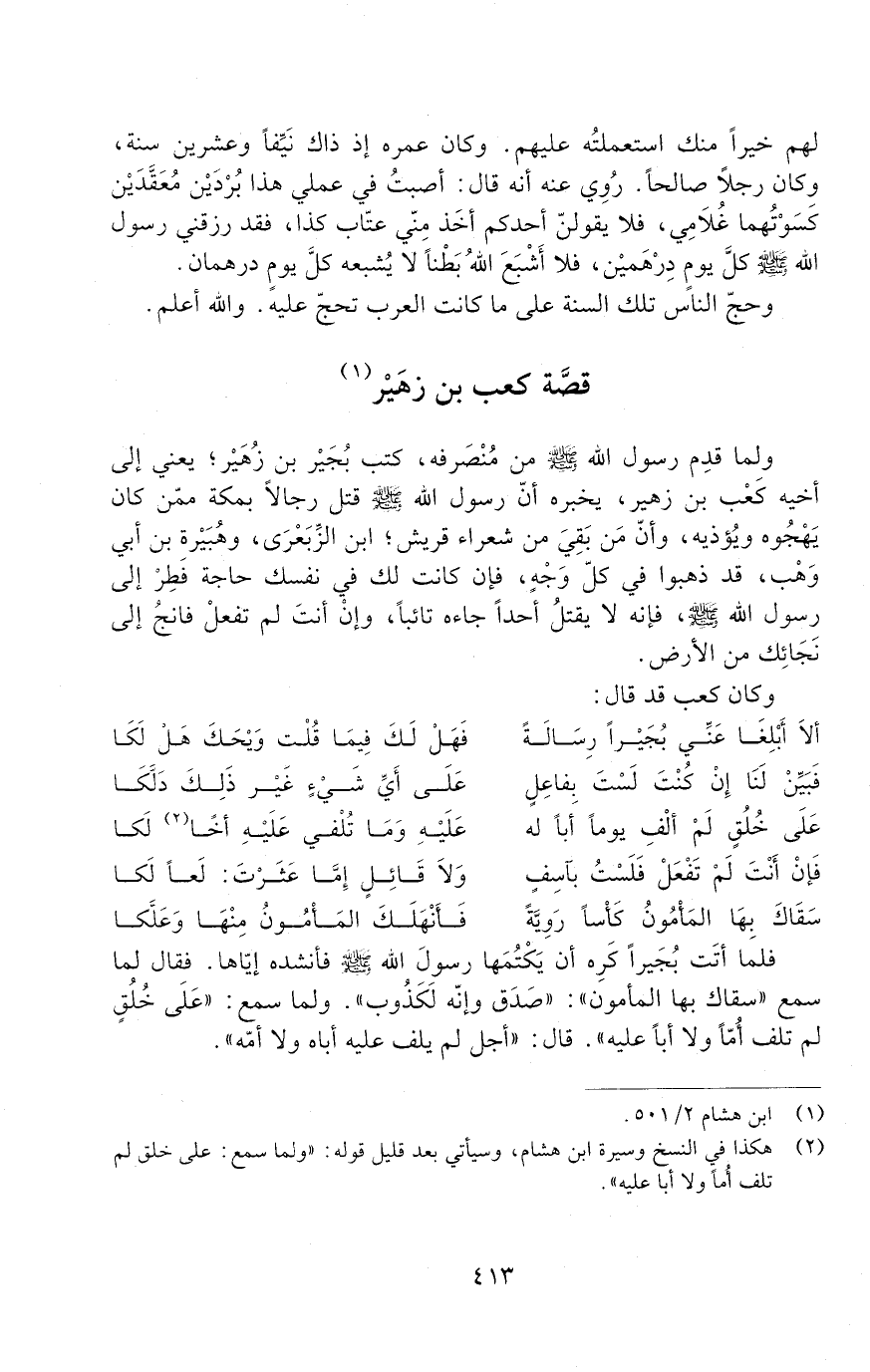 ولما قدِم رَسُول اللَّهِ صَلَّى اللَّهُ عَلَيْهِ وَسَلَّمَ مِنْ مُنْصَرفه، كتب بُجَيْر بْن زُهَيْر؛ يعني إلى أخيه كَعْب بْن زُهَيْر، يخبره أَنَّ رَسُول اللَّهِ صَلَّى اللَّهُ عَلَيْهِ وَسَلَّمَ قتل رجالًا بمكة ممّن كَانَ يَهْجُوه ويُؤذيه، وأنّ من بَقِيَ من شعراء قريش؛ ابن الزِّبَعْرَى، وهُبَيْرة بْن أبي وهب، قد ذهبوا فِي كلّ وَجْهٍ. فإن كانت لك فِي نفسك حاجة فطِرْ إِلَى رَسُول اللَّهِ صَلَّى اللَّهُ عَلَيْهِ وَسَلَّمَ، فإنه لَا يقتل أحدًا جاءه تائبًا، وإنْ أنت لم تفعلْ فانجُ إلى نَجَائِك من الأرض.