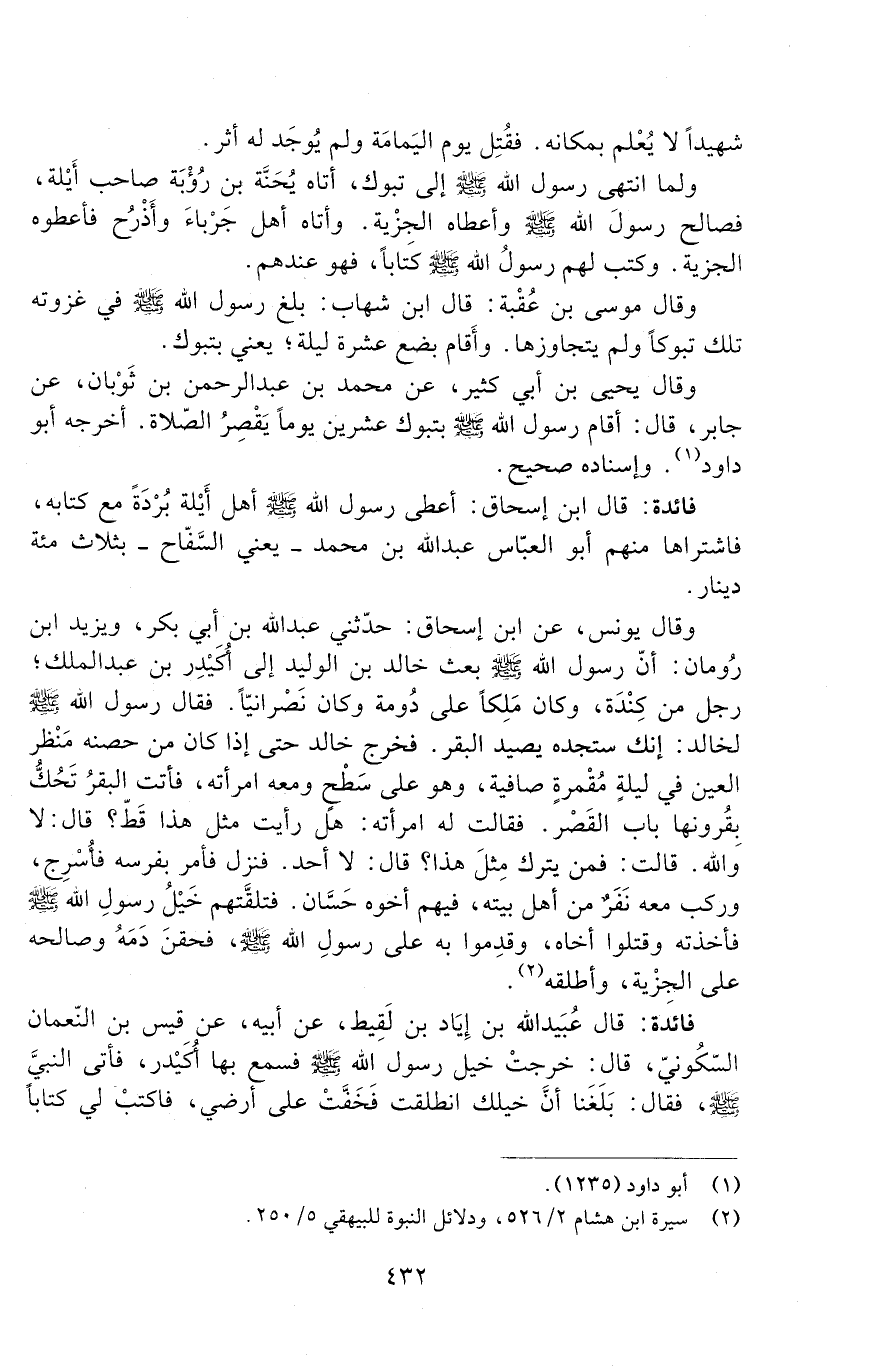 وَلَمَّا انْتَهَى رَسُولُ اللَّهِ صَلَّى اللَّهُ عَلَيْهِ وَسَلَّمَ إِلَى تَبُوكَ، أَتَاهُ يُحَنَّةُ بْنُ رُؤْبَةَ صَاحِبُ أَيْلَةَ، فَصَالَحَ رَسُولُ اللَّهِ صَلَّى اللَّهُ عَلَيْهِ وَسَلَّمَ وَأَعطَاهُ الْجِزْيَةَ، وَأَتَاهُ أَهْلُ جَرْبَاءَ وَأَذْرُحَ فَأَعْطَوْهُ الْجِزْيَةَ. وكتب لهم رسول الله صَلَّى اللَّهُ عَلَيْهِ وَسَلَّمَ كتابا، فهو عندهم.