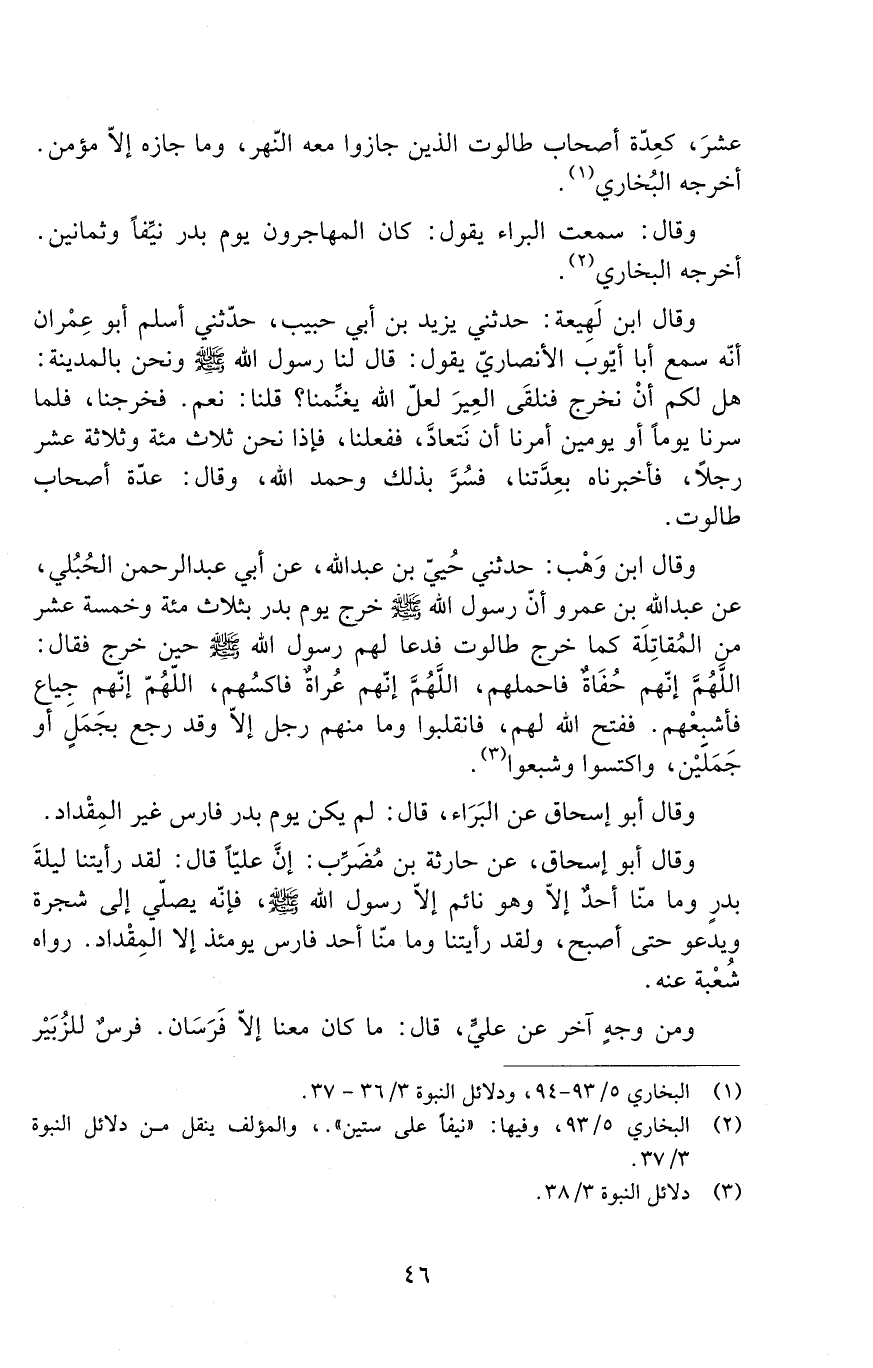وقال: سَمِعْتُ الْبَرَاءَ يَقُولُ: كَانَ الْمُهَاجِرُونَ يَوْمَ بَدْرٍ نَيِّفًا وَثَمَانِينَ. أَخْرَجَهُ الْبُخَارِيُّ.