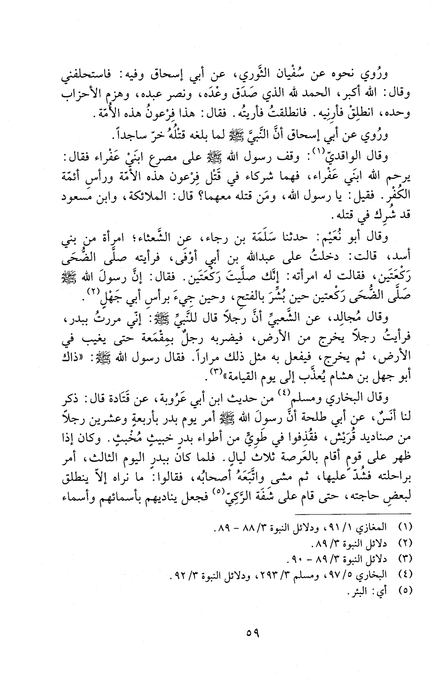 وَقَالَ الْوَاقِدِيُّ: وَقَفَ رَسُولُ اللَّهِ - صَلَّى اللَّهُ عَلَيْهِ وَسَلَّمَ - عَلَى مَصْرَعِ ابْنَيْ عَفْرَاءَ فَقَالَ: يَرْحَمُ اللَّهُ ابْنَي عَفْرَاءَ، فَهُمَا شُرَكَاءُ فِي قَتْلِ فِرْعَوْنَ هَذِهِ الْأُمَّةِ وَرَأْسِ أَئِمَّةِ الْكُفْرِ. فَقِيلَ: يَا رَسُولَ اللَّهِ، وَمَنْ قَتَلَهُ مَعَهُمَا؟ قَالَ: الْمَلَائِكَةُ، وَابْنُ مَسْعُودٍ قَدْ شُرِكَ فِي قَتْلِهِ.