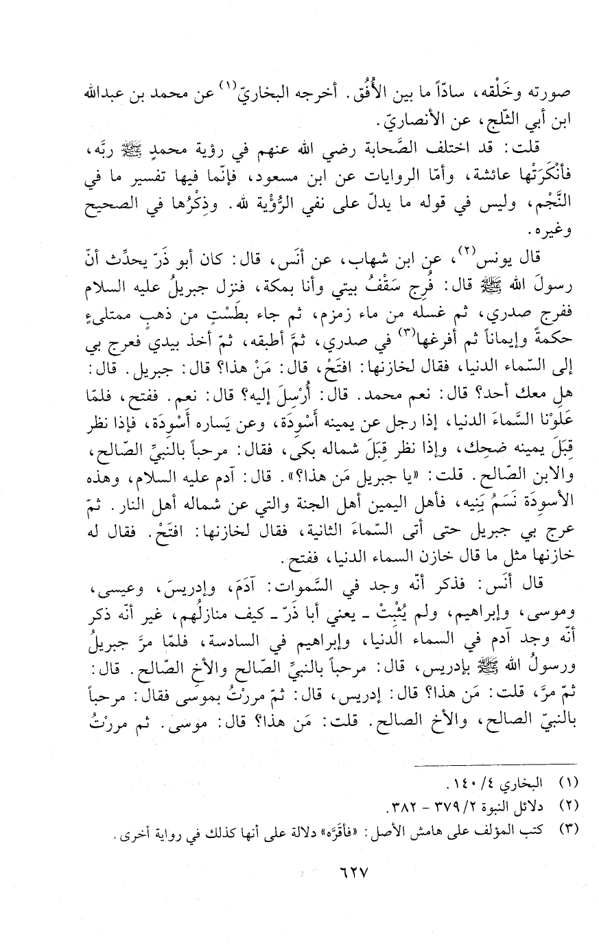 قال أنس: فذكر أنّه وجد في السّماوات: آدَمَ، وَإِدْرِيسَ، وَعِيسَى، وَمُوسَى، وَإِبْرَاهِيمَ، وَلَمْ يُثْبِتْ - يَعْنِي أَبَا ذَرٍّ - كَيْفَ مَنَازِلُهُمْ، غَيْرَ أَنَّهُ ذَكَرَ أَنَّهُ وَجَدَ آدَمَ فِي السَّمَاءِ الدُّنْيَا، وإبراهيم في السَّادِسَةِ، فَلَمَّا مَرَّ جِبْرِيلُ وَرَسُولُ اللَّهِ صَلَّى اللَّهُ عَلَيْهِ وَسَلَّمَ بِإِدْرِيسَ، قَالَ: مَرْحَبًا بِالنَّبِيِّ الصَّالِحِ وَالْأَخِ الصَّالِحِ، قَالَ: ثُمَّ مَرَّ، قُلْتُ: مَنْ هَذَا؟ قَالَ: إِدْرِيسُ، قَالَ: ثُمَّ مَرَرْتُ بِمُوسَى فَقَالَ: مَرْحَبًا بِالنَّبِيِّ الصَّالِحِ، وَالْأَخِ الصَّالِحِ: قُلْتُ: مَنْ هَذَا؟ قَالَ: مُوسَى، ثُمَّ مَرَرْتُ
