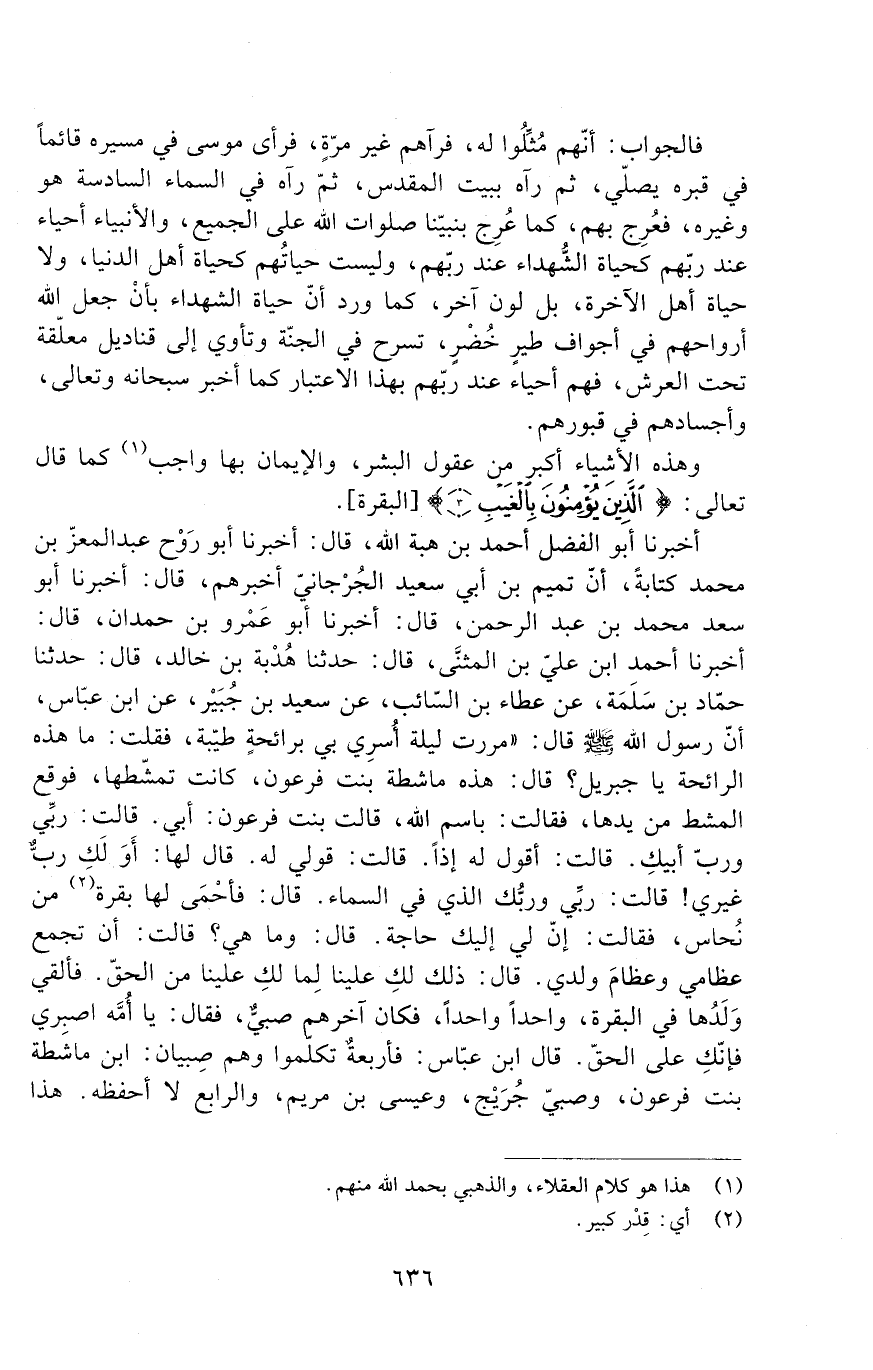 وَهَذِهِ الْأَشْيَاءُ أَكْبَرُ مِنْ عُقُولِ الْبَشَرِ، وَالْإِيمَانُ بِهَا وَاجِبٌ كَمَا قَالَ تَعَالَى: {الَّذِينَ يُؤْمِنُونَ بِالْغَيْبِ}.