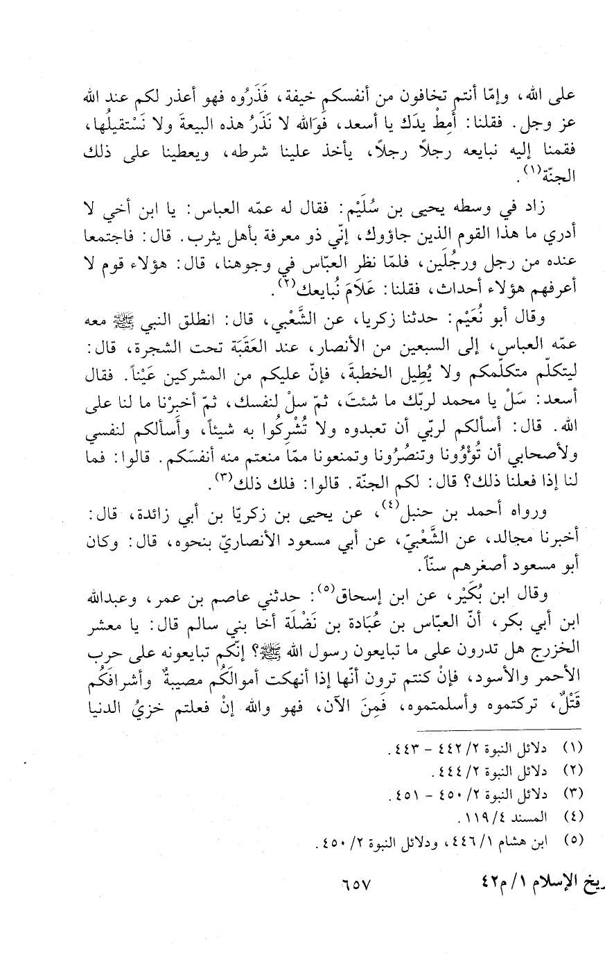 زَادَ فِي وَسَطِهِ يَحْيَى بْنُ سُلَيْمٍ: فَقَالَ لَهُ عَمُّهُ الْعَبَّاسُ: يَا ابْنَ أَخِي لَا أَدْرِي مَا هَذَا الْقَوْمُ الذين جاؤوك، إنّي ذو معرفة بأهل يثرب، قال: فاجتمعا عِنْدَهُ مِنْ رَجُلٍ وَرَجُلَيْنِ، فَلَمَّا نَظَرَ الْعَبَّاسُ فِي وُجُوهِنَا، قَالَ: هَؤُلَاءِ قَوْمٌ لَا أَعْرِفُهُمْ هَؤُلَاءِ أَحْدَاثٌ، فَقُلْنَا: عَلَامَ نُبَايِعُكَ؟