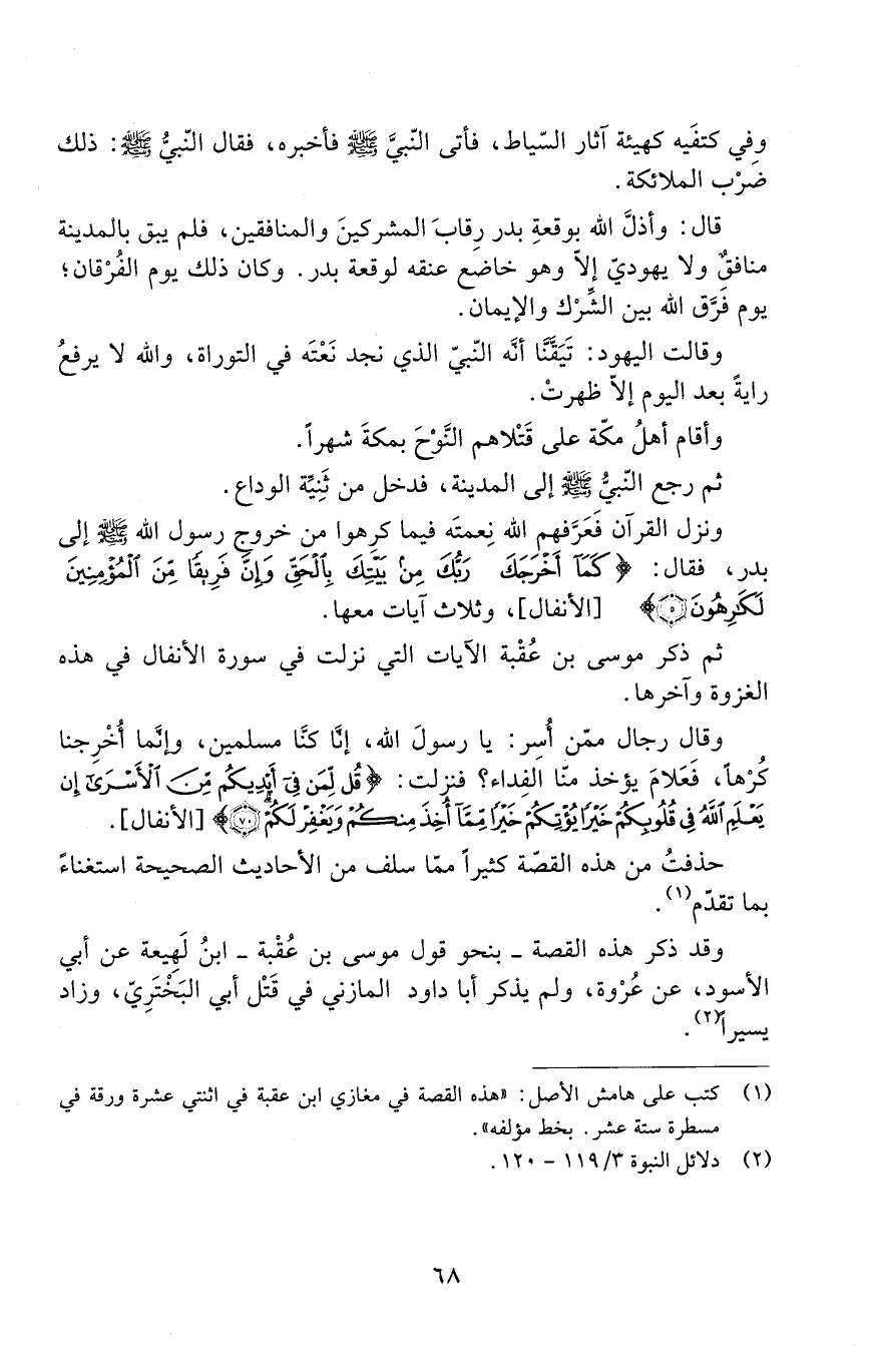 ثُمَّ ذَكَرَ مُوسَى بْنُ عُقْبَةَ الْآيَاتِ الَّتِي نَزَلَتْ فِي سُورَةِ الْأَنْفَالِ فِي هَذِهِ الْغَزْوَةِ وَآخِرِهَا.