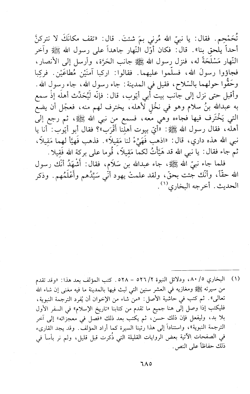 فَلَمَّا جَاءَ نبيّ الله صلى الله عليه وسلم، جاء عبد الله بن سلام فقال: أشهد أَنَّكَ رَسُولُ اللَّهِ حَقًّا، وَأَنَّكَ جِئْتَ بِحَقٍّ، وَلَقَدْ عَلِمَتْ يَهُودُ أَنِّي سَيِّدُهُمْ وَأَعْلَمُهُمْ. وَذَكَرَ الحديث. أخرجه البخاري.