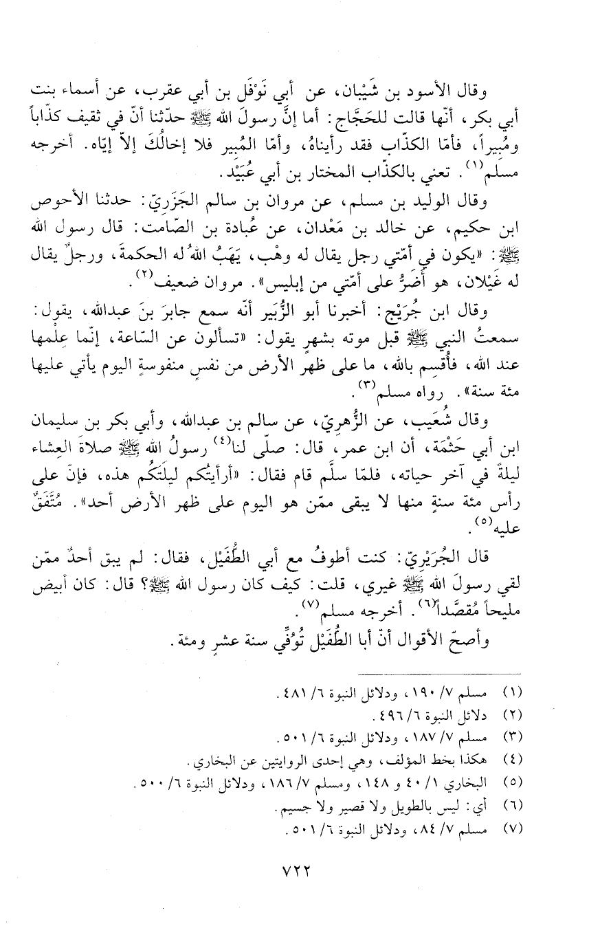 وَقَالَ الْأَسْوَدُ بْنُ شَيْبَانَ، عَنْ أَبِي نَوْفَلِ بْنِ أَبِي عَقْرَبَ، عَنْ أَسْمَاءَ بِنْتِ أَبِي بَكْرٍ، أَنَّهَا قَالَتْ لِلْحَجَّاجِ: أَمَا إِنَّ رَسُولَ اللَّهِ - صَلَّى اللَّهُ عَلَيْهِ وَسَلَّمَ - حَدَّثَنَا أَنَّ فِي ثَقِيفٍ كَذَّابًا وَمُبِيرًا، فَأَمَّا الْكَذَّابُ فَقَدْ رَأَيْنَاهُ، وَأَمَّا الْمُبِيرُ فَلَا إِخَالُكَ إِلَّا إِيَّاهُ. أخرجه مسلم، تعني بالكذّاب المختار بن أبي عُبَيْدٍ.