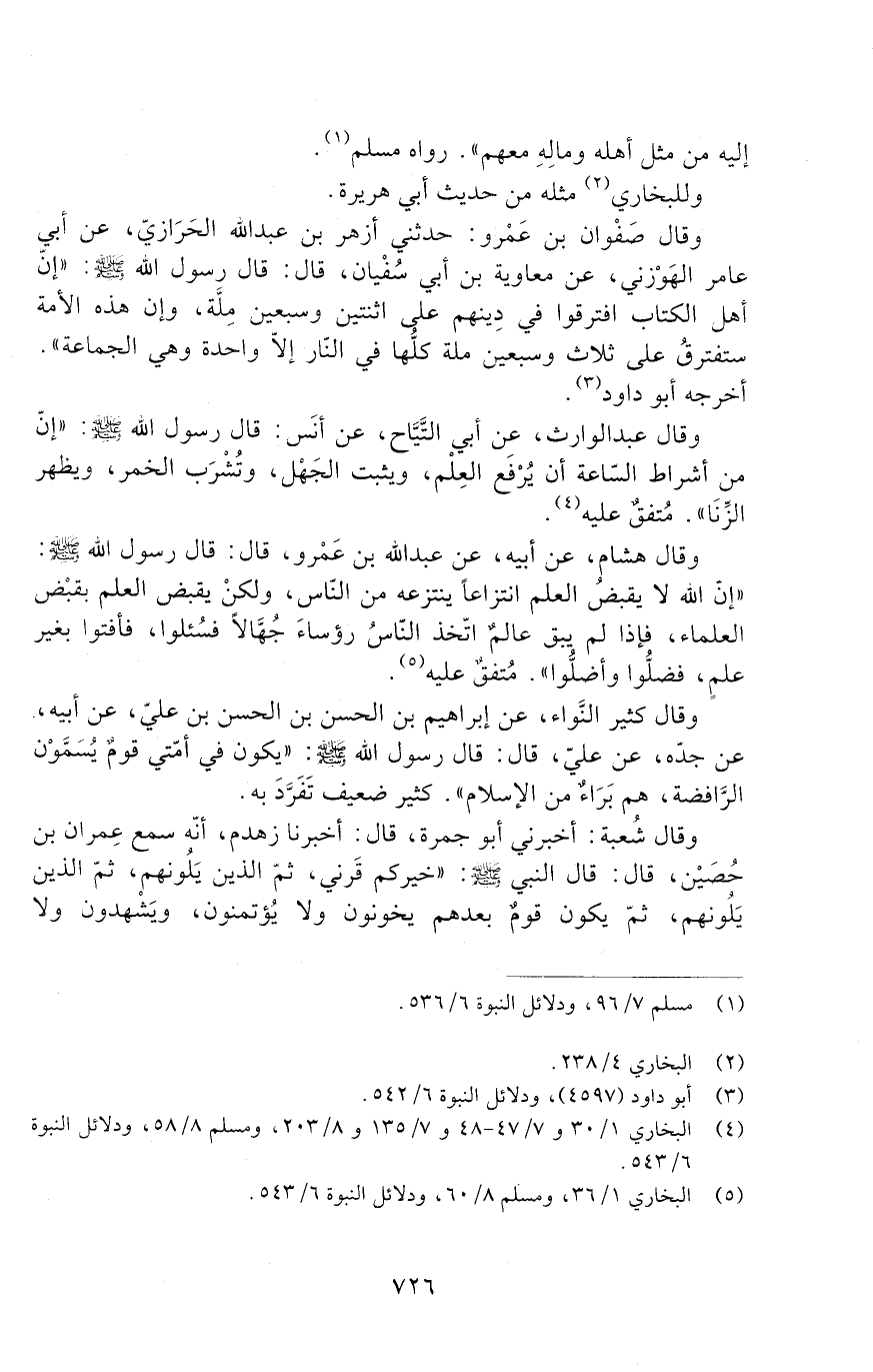 وَقَالَ هِشَامٌ، عَنْ أَبِيهِ، عَنْ عَبْدِ اللَّهِ بْنِ عَمْرٍو قَالَ: قَالَ رَسُولُ اللَّهِ - صَلَّى اللَّهُ عَلَيْهِ وَسَلَّمَ -: " إِنَّ اللَّهَ لَا يَقْبِضُ الْعِلْمَ انْتِزَاعًا يَنْتَزِعُهُ مِنَ النَّاسِ، وَلَكِنْ يَقْبِضُ الْعِلْمَ بِقَبْضِ الْعُلَمَاءِ، فَإِذَا لَمْ يَبْقَ عَالِمٌ اتَّخَذَ النَّاسُ رُؤَسَاءَ جُهَّالًا فَسُئِلُوا، فَأَفْتَوْا بِغَيْرِ عِلْمٍ، فَضَلُّوا وَأَضَلُّوا ". مُتَّفَقٌ عَلَيْهِ.