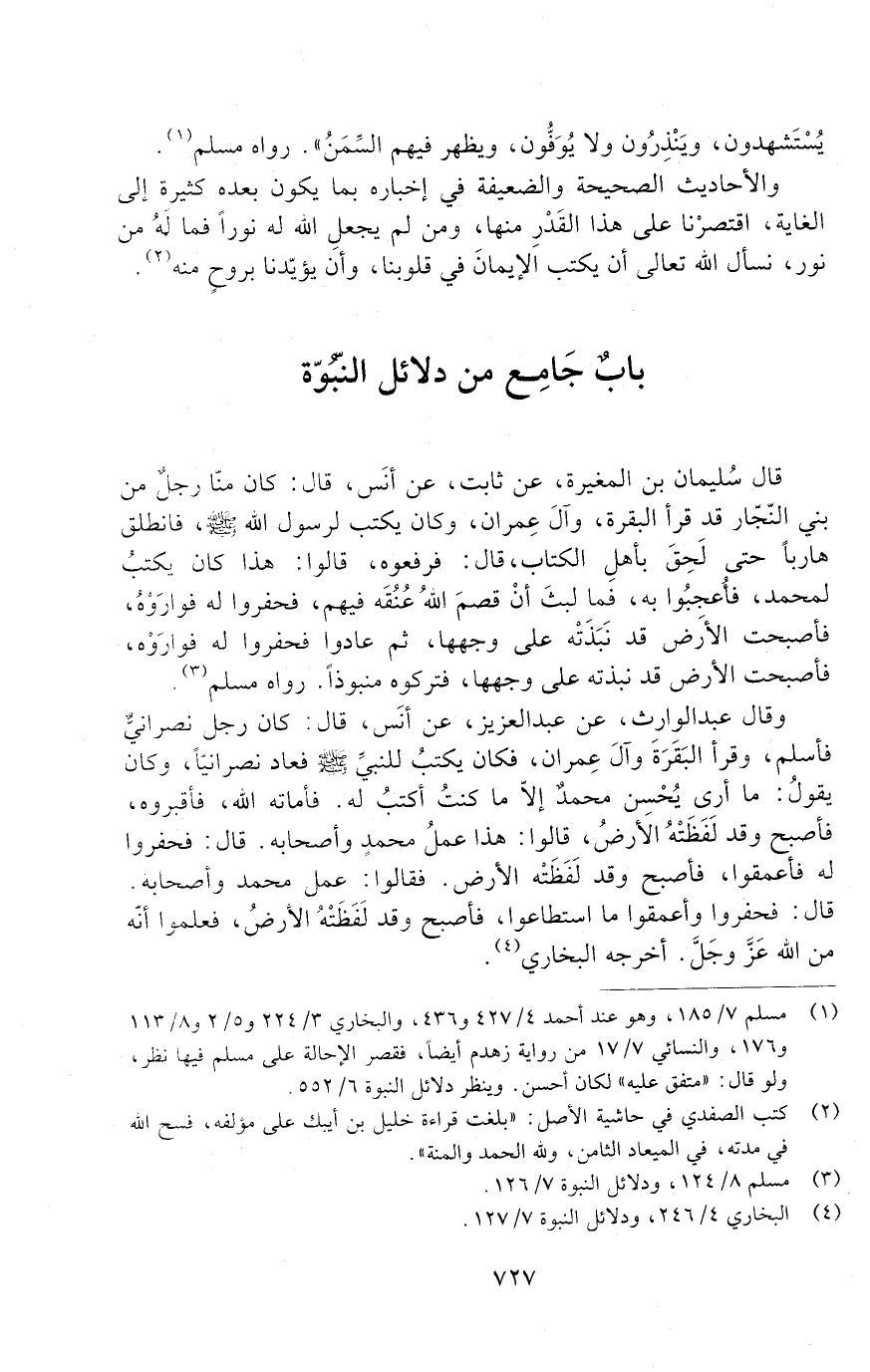 وَالْأَحَادِيثُ الصَّحِيحَةُ وَالضَّعِيفَةُ فِي إِخْبَارِهِ بِمَا يَكُونُ بَعْدَهُ كَثِيرَةٌ إِلَى الْغَايَةِ، اقْتَصَرْنَا عَلَى هَذَا الْقَدْرِ مِنْهَا، وَمَنْ لَمْ يَجْعَلِ الله نُورًا فَمَا لَهُ مِنْ نُورٍ، نَسْأَلُ اللَّهَ - تَعَالَى - أَنْ يَكْتُبَ الْإِيمَانَ فِي قُلُوبِنَا، وَأَنْ يُؤَيِّدَنَا بِرُوحٍ مِنْهُ.