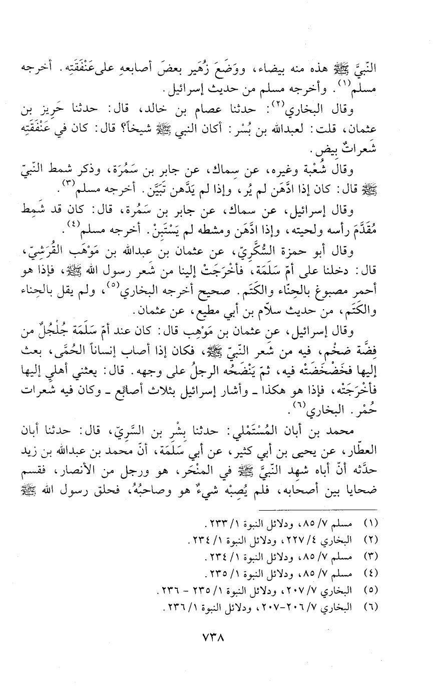 وَقَالَ شُعْبَةُ وَغَيْرُهُ، عَنْ سِمَاكٍ، عَنْ جَابِرِ بْنِ سَمُرَةَ، وَذَكَرَ شَمْطَ النَّبِيِّ - صَلَّى اللَّهُ عَلَيْهِ وَسَلَّمَ - قَالَ: كَانَ إِذَا ادَّهَنَ لَمْ ير، وإذا لم يدهن تبيّن. أخرجه مسلم.