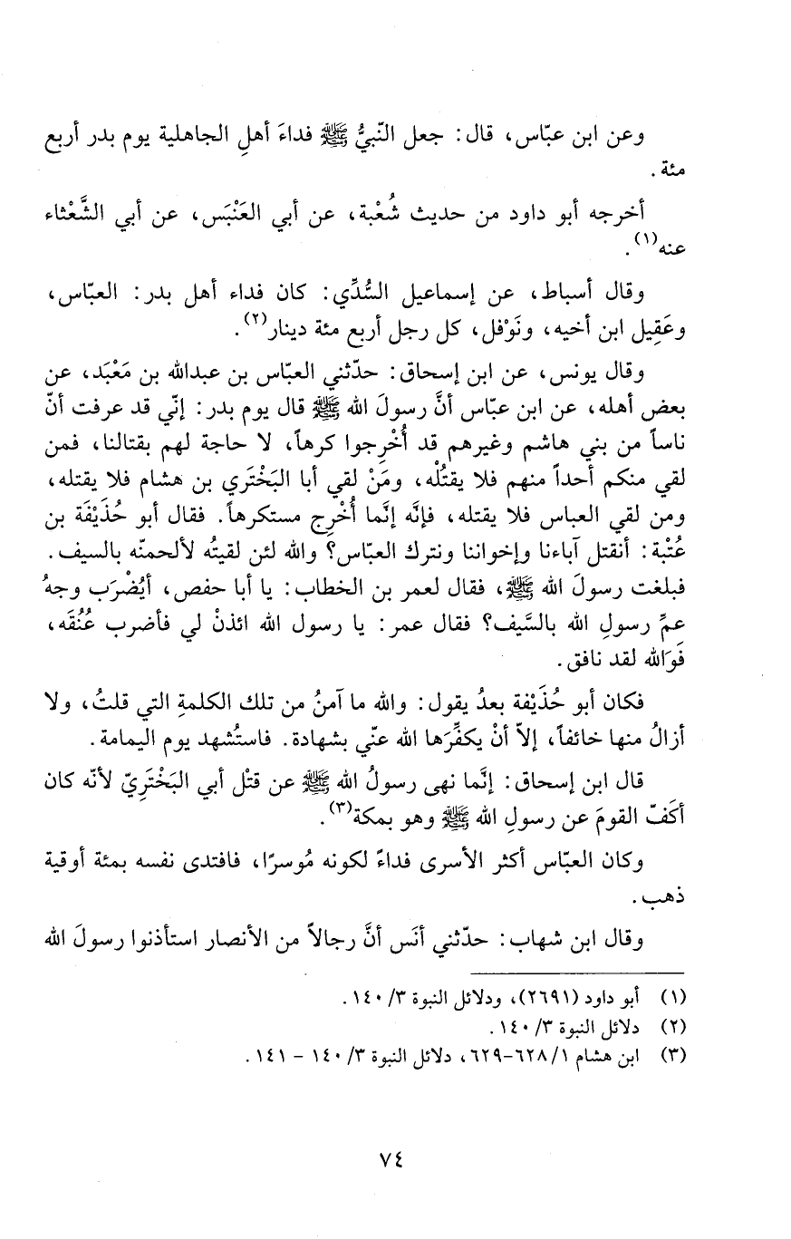 وعن ابن عباس قَالَ: جَعَلَ النَّبِيُّ - صَلَّى اللَّهُ عَلَيْهِ وَسَلَّمَ - فِدَاءَ أَهْلِ الْجَاهِلِيَّةِ يَوْمَ بَدْرٍ أَرْبَعَمِائَةٍ. أَخْرَجَهُ أَبُو دَاوُدَ مِنْ حَدِيثِ شُعْبَةَ، عَنْ أَبِي الْعَنْبَسِ، عَنْ أَبِي الشَّعْثَاءِ عَنْهُ.