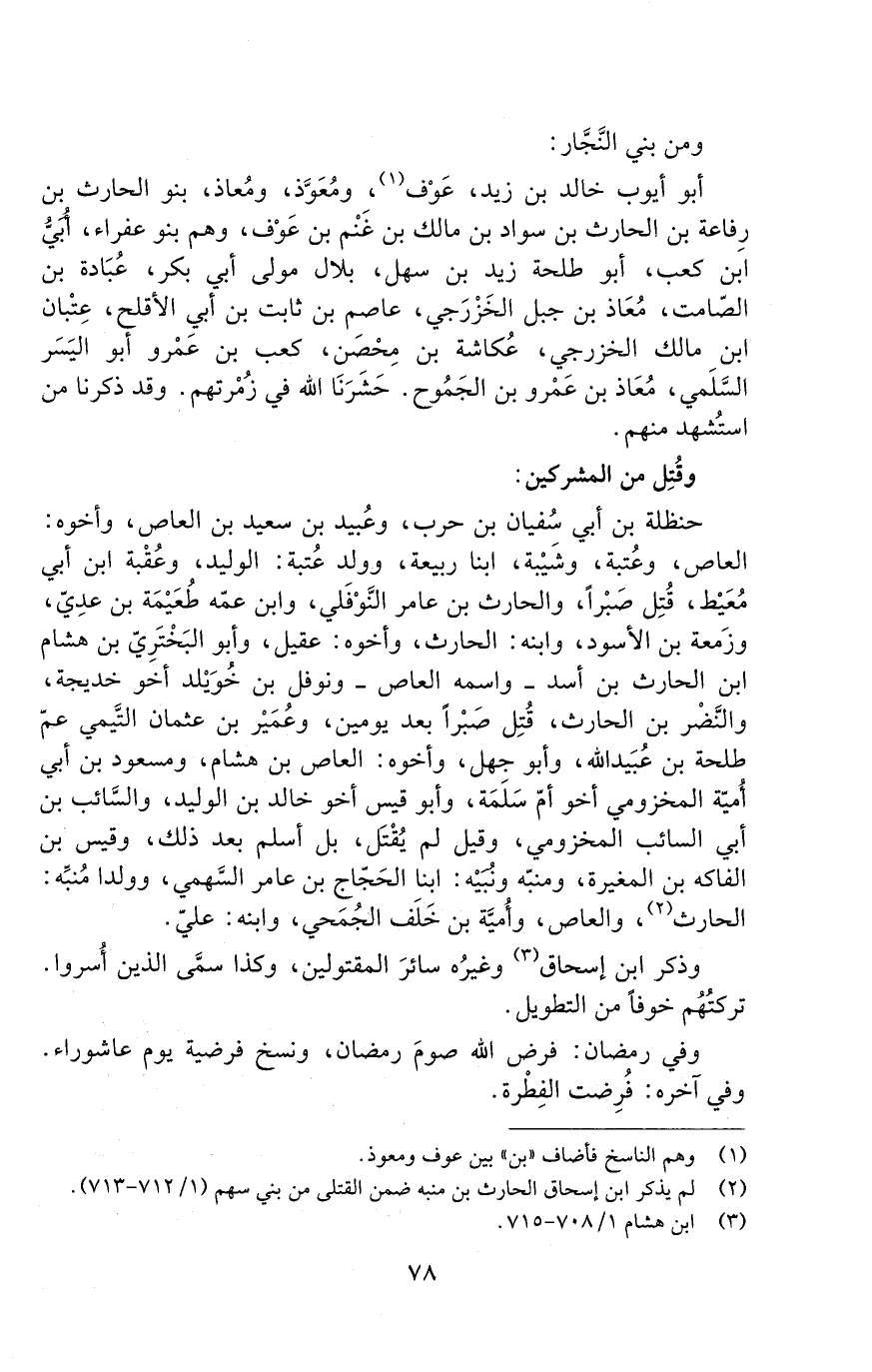 وَذَكَرَ ابْنُ إِسْحَاقَ وَغَيْرُهُ سَائِرَ الْمَقْتُولِينَ، وَكَذَا سَمَّى الَّذِينَ أُسِرُوا. تَرَكْتُهُمْ خَوْفًا مِنَ التَّطْوِيلِ.