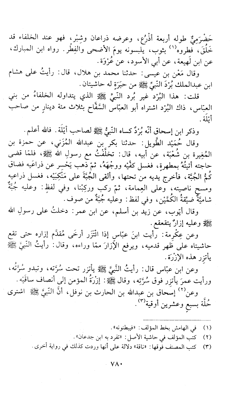 قُلْتُ: هَذَا الْبُرْدُ غَيْرُ بُرْدِ النَّبِيِّ - صَلَّى اللَّهُ عَلَيْهِ وَسَلَّمَ - الَّذِي يَتَدَاوَلُهُ الْخُلَفَاءُ مِنْ بَنِي الْعَبَّاسِ، ذَاكَ الْبُرْدُ اشْتَرَاهُ أَبُو الْعَبَّاسِ السَّفَّاحُ بثلاث مائة دِينَارٍ مِنْ صَاحِبِ أَيْلَةَ.