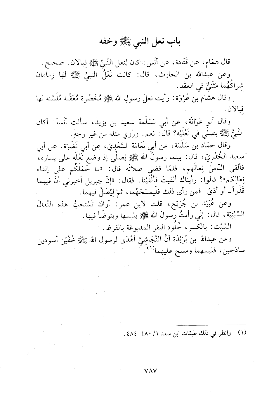 -بَابُ نَعْلِ النَّبِيِّ صَلَّى اللَّهُ عَلَيْهِ وَسَلَّمَ وَخُفِّهِ.