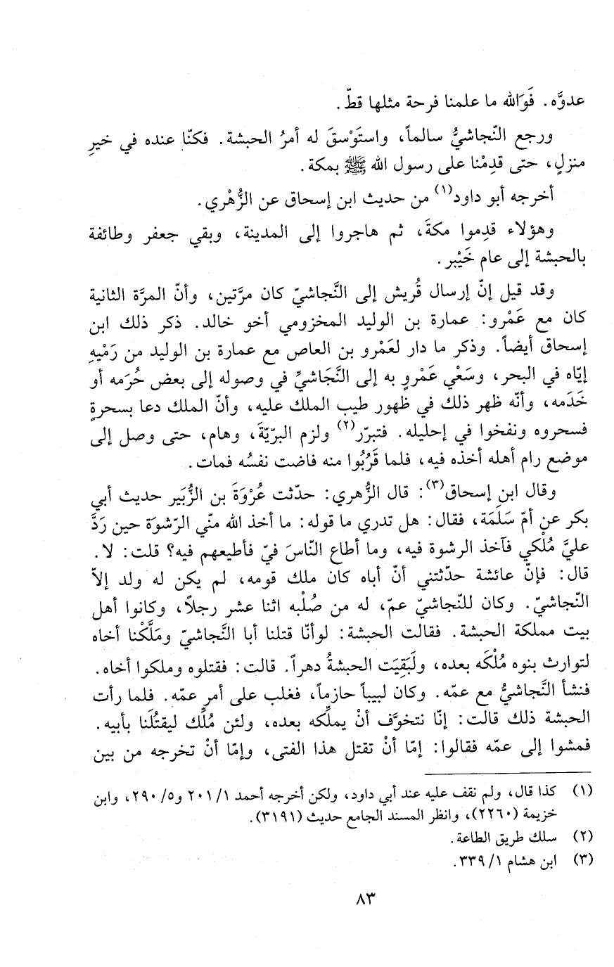 ورجع النجاشي سالما، واستوسق لَهُ أَمْرُ الْحَبَشَةِ. فَكُنَّا عِنْدَهُ فِي خَيْرِ مَنْزِلٍ، حَتَّى قَدِمْنَا عَلَى رَسُولِ اللَّهِ - صَلَّى اللَّهُ عَلَيْهِ وَسَلَّمَ - بمكة. أخرجه أبو داود مِنْ حَدِيثِ ابْنِ إِسْحَاقَ عَنِ الزُّهْرِيِّ.