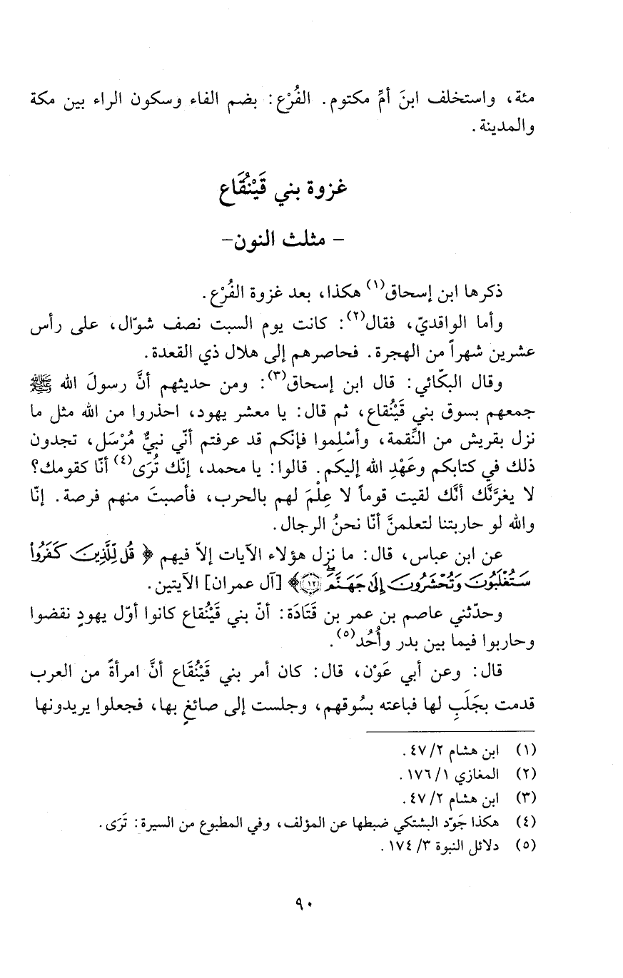 قَالَ: وَعَنْ أَبِي عَوْنٍ قال: كان أَمْرِ بَنِي قَيْنُقَاعَ أَنَّ امْرَأَةً مِنَ الْعَرَبِ قَدِمَتْ بِجَلْبٍ لَهَا فَبَاعَتْهُ بِسُوقِهِمْ، وَجَلَسَتْ إِلَى صَائِغٍ بِهَا. فَجَعَلُوا يُرِيدُونَها