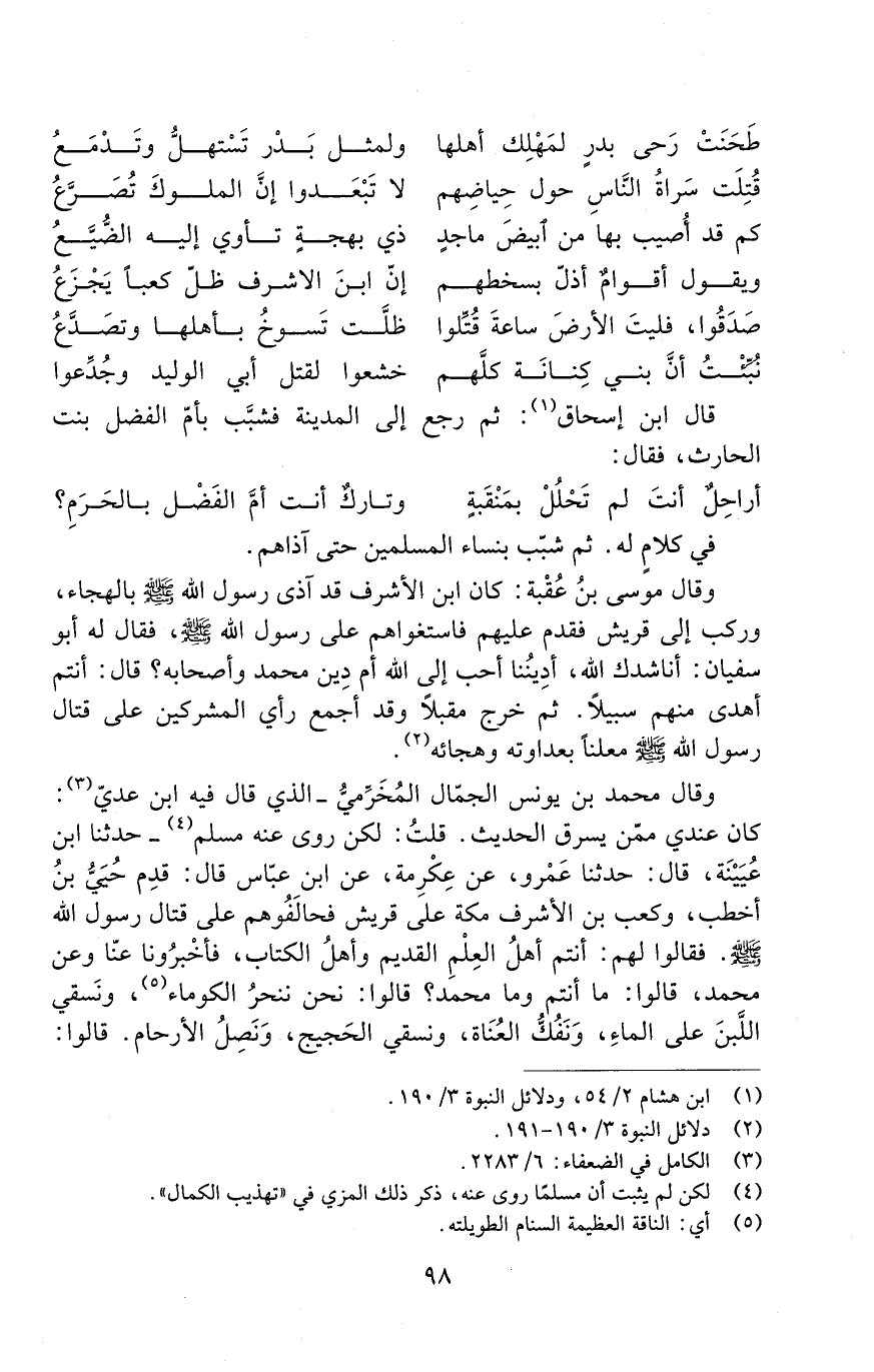 طَحَنَتْ رَحَى بَدْرٍ لِمَهْلِكِ أَهْلِهَا ... وَلِمِثْلِ بَدْرٍ تَسْتَهِلُّ وَتَدْمَعُ.