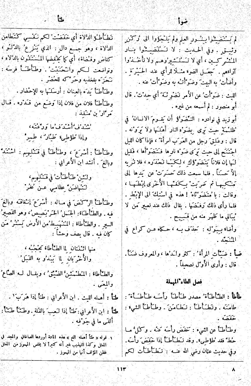 طتأ: أَهمله اللَّيْثُ. ابْنُ الأَعرابي: طتأَ إِذَا هَرَبَ «2».