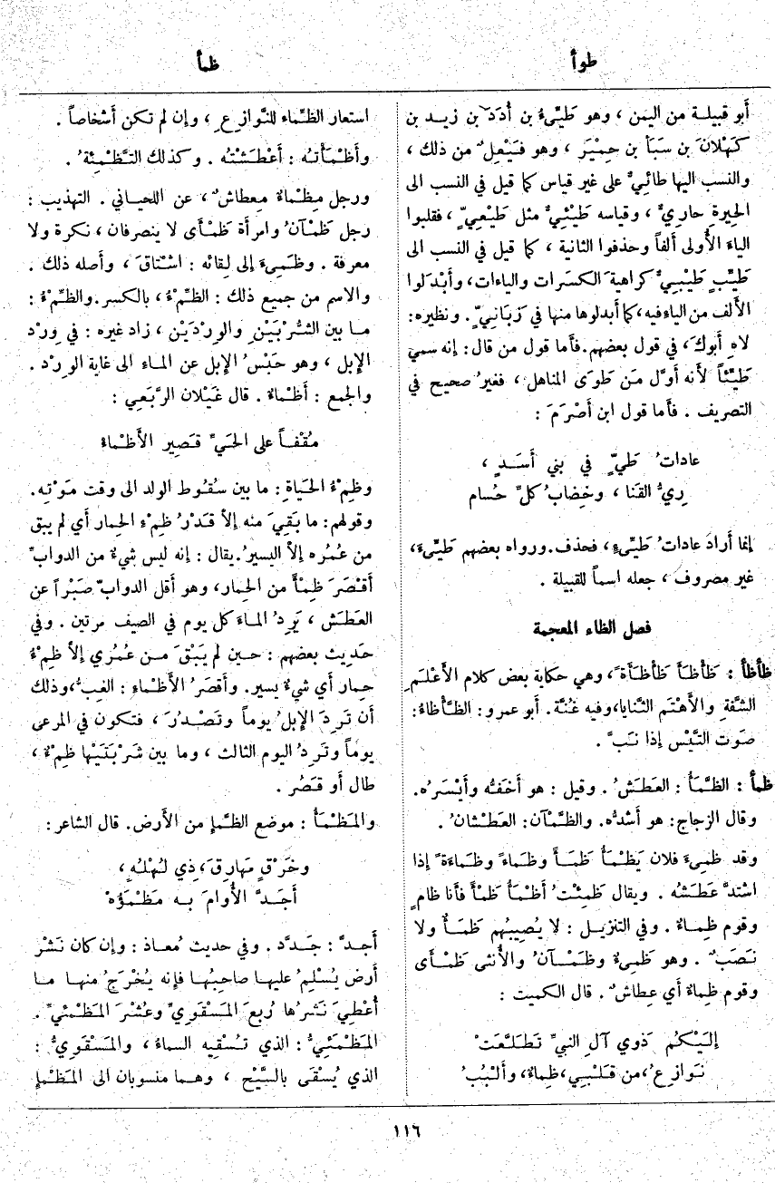 ظمأ: الظَّمَأُ: العَطَشُ. وَقِيلَ: هُوَ أَخَفُّه وأَيْسَرُه. وَقَالَ الزَّجَّاجُ: هُوَ أَشدُّه. والظَّمْآن: العَطْشانُ. وَقَدْ ظمِئَ فُلَانٌ يَظْمَأُ ظَمَأً وظَماءً وظَماءَةً إِذَا اشتدَّ عَطَشُه. وَيُقَالُ ظَمِئْتُ أَظْمَأُ ظَمْأً فأَنا ظامٍ وَقَوْمٌ ظِماءٌ. وَفِي التَّنْزِيلِ: لَا يُصِيبُهُمْ ظَمَأٌ وَلا نَصَبٌ