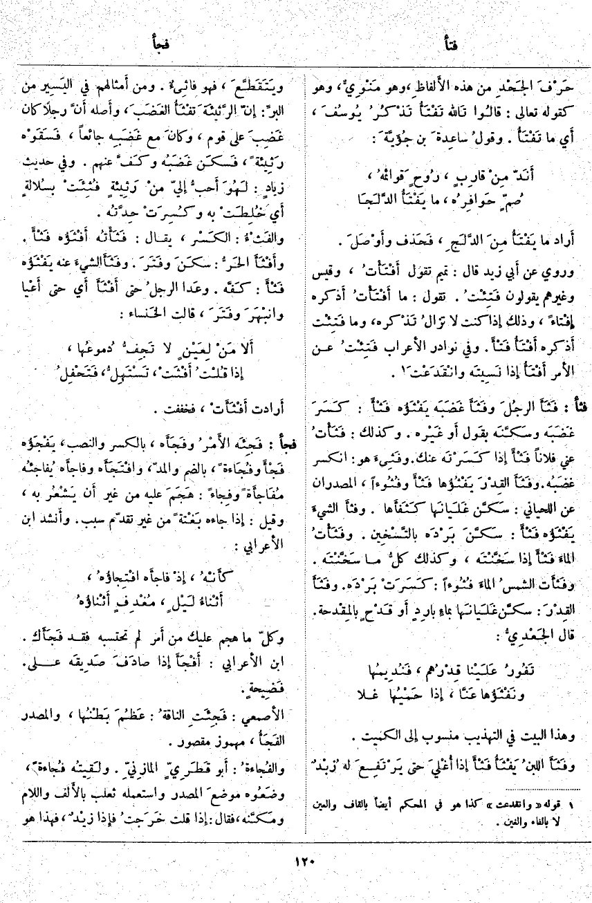 أَراد مَا يَفْتَأُ مِنَ الدَّلَجِ، فَحَذف وأَوْصَلَ. وَرُويَ عَنْ أَبي زَيْدٍ قَالَ: تَمِيمٌ تَقُولُ أَفْتَأْتُ، وَقَيْسٌ وَغَيْرُهُمْ يَقُولُونَ فَتِئْتُ. تَقُولُ: مَا أَفْتَأْتُ أَذكره إفْتاءً، وَذَلِكَ إِذَا كُنْتَ لَا تزالُ تَذْكره. وَمَا فَتِئْت أَذكره أَفْتَأُ فَتْأً. وَفِي نَوَادِرِ الأَعراب فَتِئْتُ عَنِ الأَمر أَفْتَأُ إِذا نَسِيتَه وانْقَدَعْتَ «1».