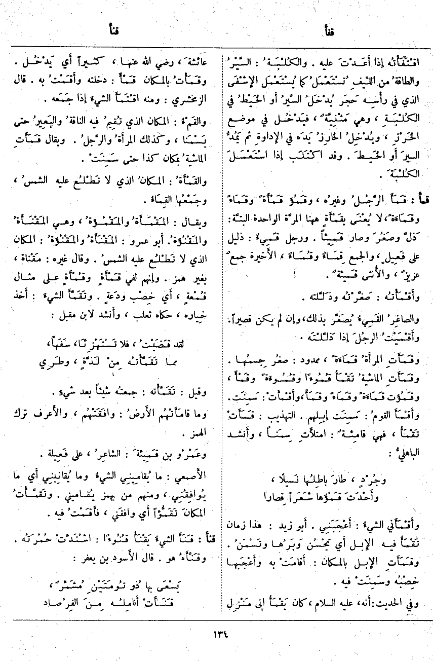 قنأ: قَنَأَ الشيءُ يَقْنَأُ قُنُوءًا: اشْتَدَّتْ حُمرَتُه. وقَنَّأَهُ هُوَ. قَالَ الأَسود بْنُ يَعْفُرَ: