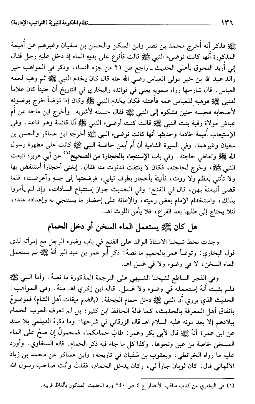 هل كان صلى الله عليه وسلم يستعمل الماء السخن أو دخل الحمام