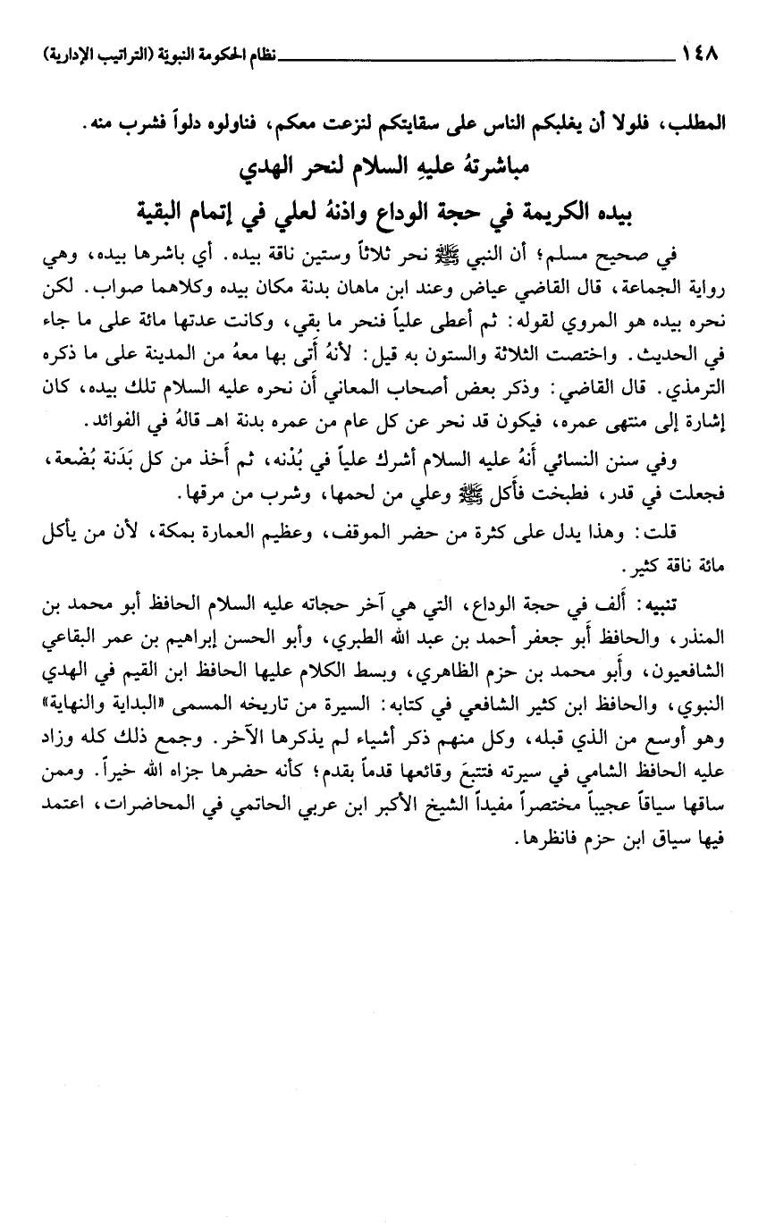 مباشرته عليه السلام لنحر الهدي بيده الكريمة في حجة الوداع واذنه لعلي في إتمام البقية