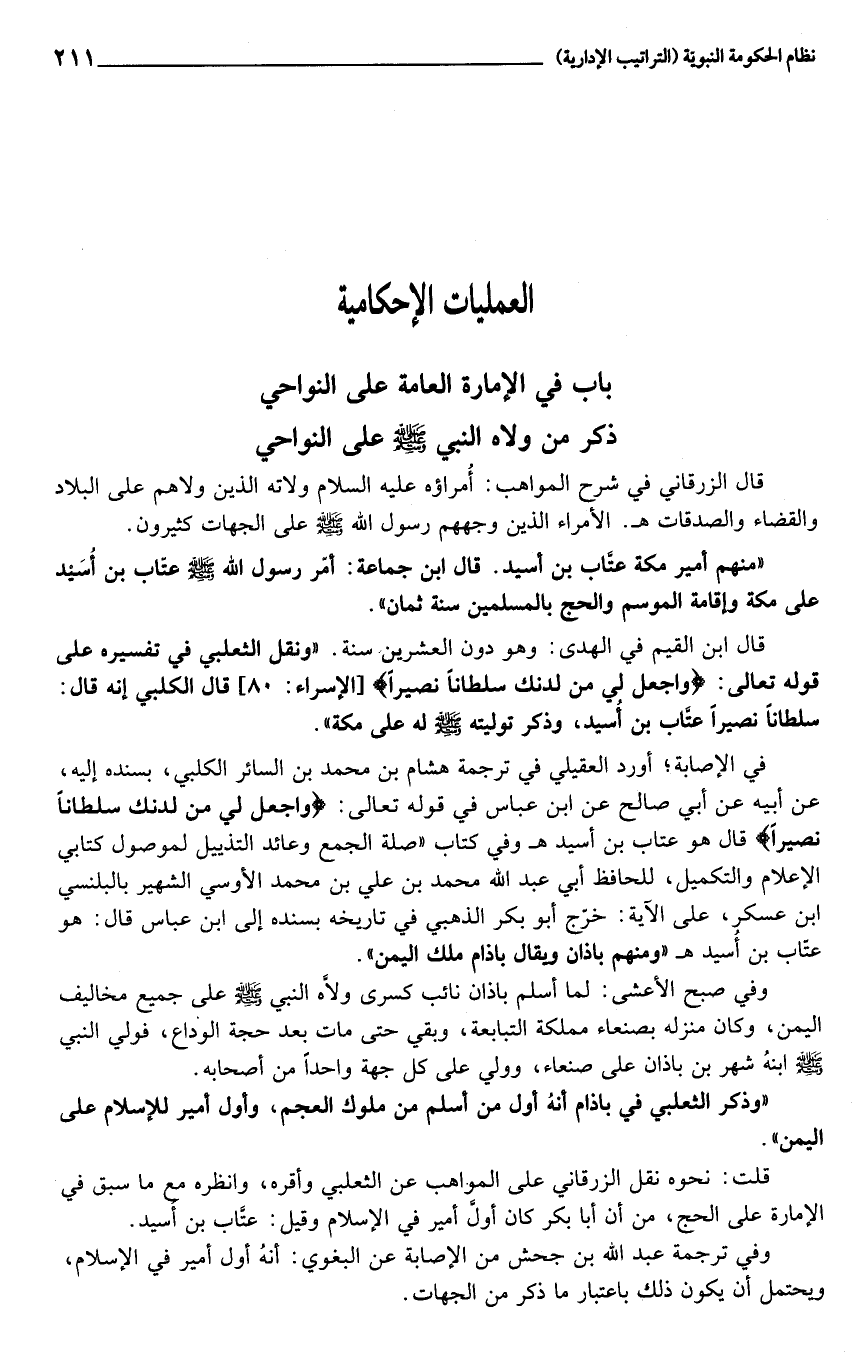 «منهم أمير مكة عتّاب بن أسيد. قال ابن جماعة: أمّر رسول الله صلى الله عليه وسلم عتّاب بن أسيد على مكة وإقامة الموسم والحج بالمسلمين سنة ثمان» .