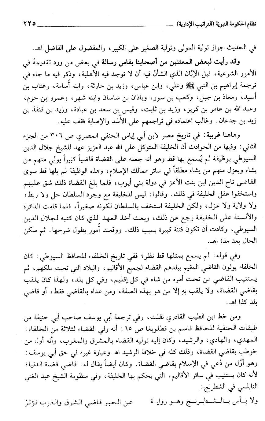 ومن خط ابن الطيب القادري نقلت، وفي ترجمة أبي يوسف صاحب أبي حنيفة من طبقات الحنفية للحافظ قاسم بن قطلوبغا ص 65: أنه ولي القضاء لثلاثة من الخلفاء: