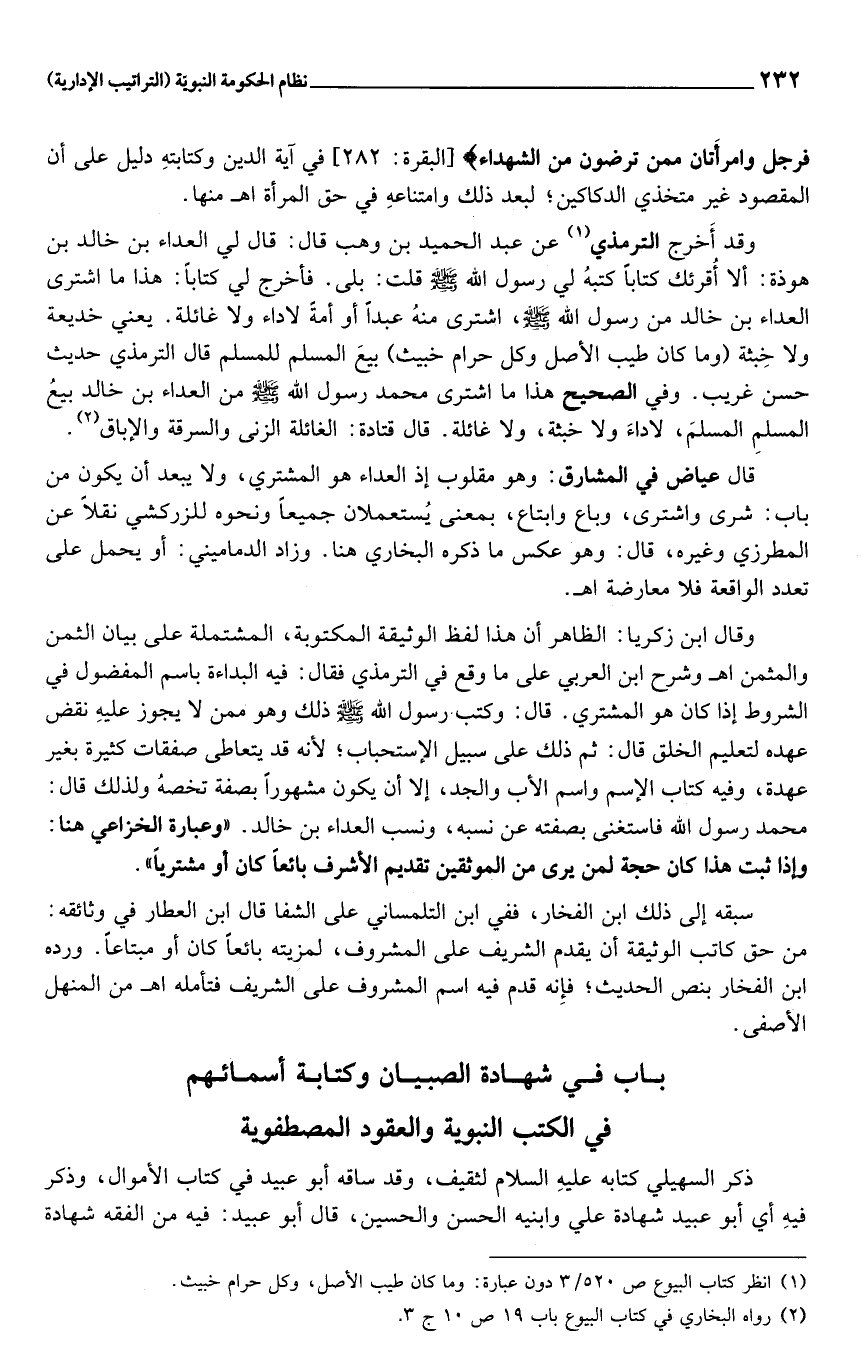 باب في شهادة الصبيان وكتابة أسمائهم في الكتب النبوية والعقود المصطفوية