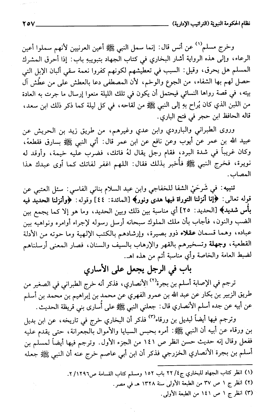 (1) انظر كتاب الجهاد للبخاري ج 4/ 22 باب 152 ومسلم كتاب القسامة ص 1296/ 2.